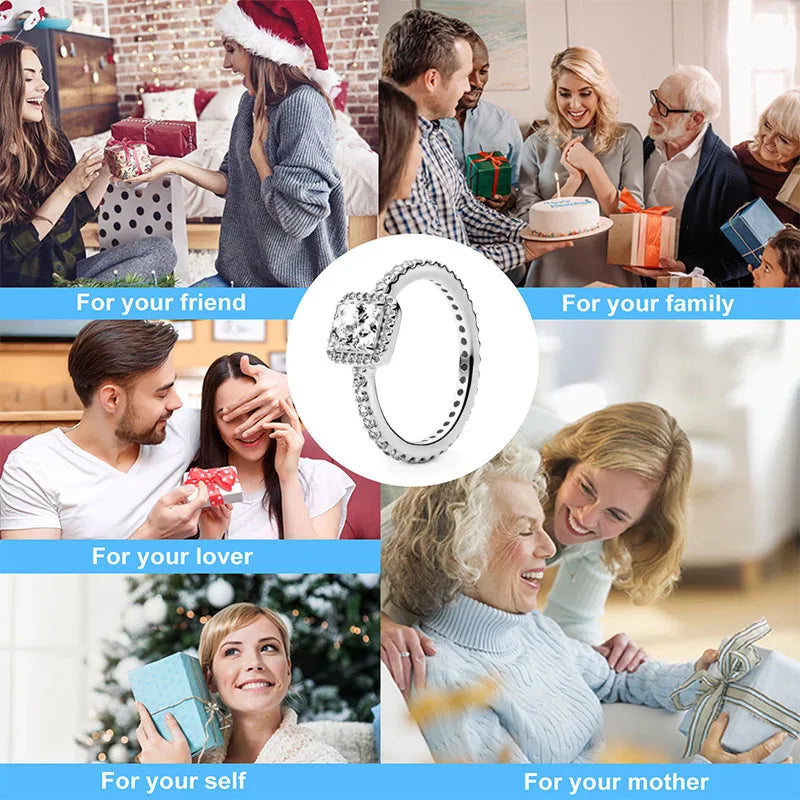 Hot Selling 925 Sterling Silver Classic Square Heart-shaped Crown Ring Exquisite Women's Jewelry Anniversary Surprise Gifts