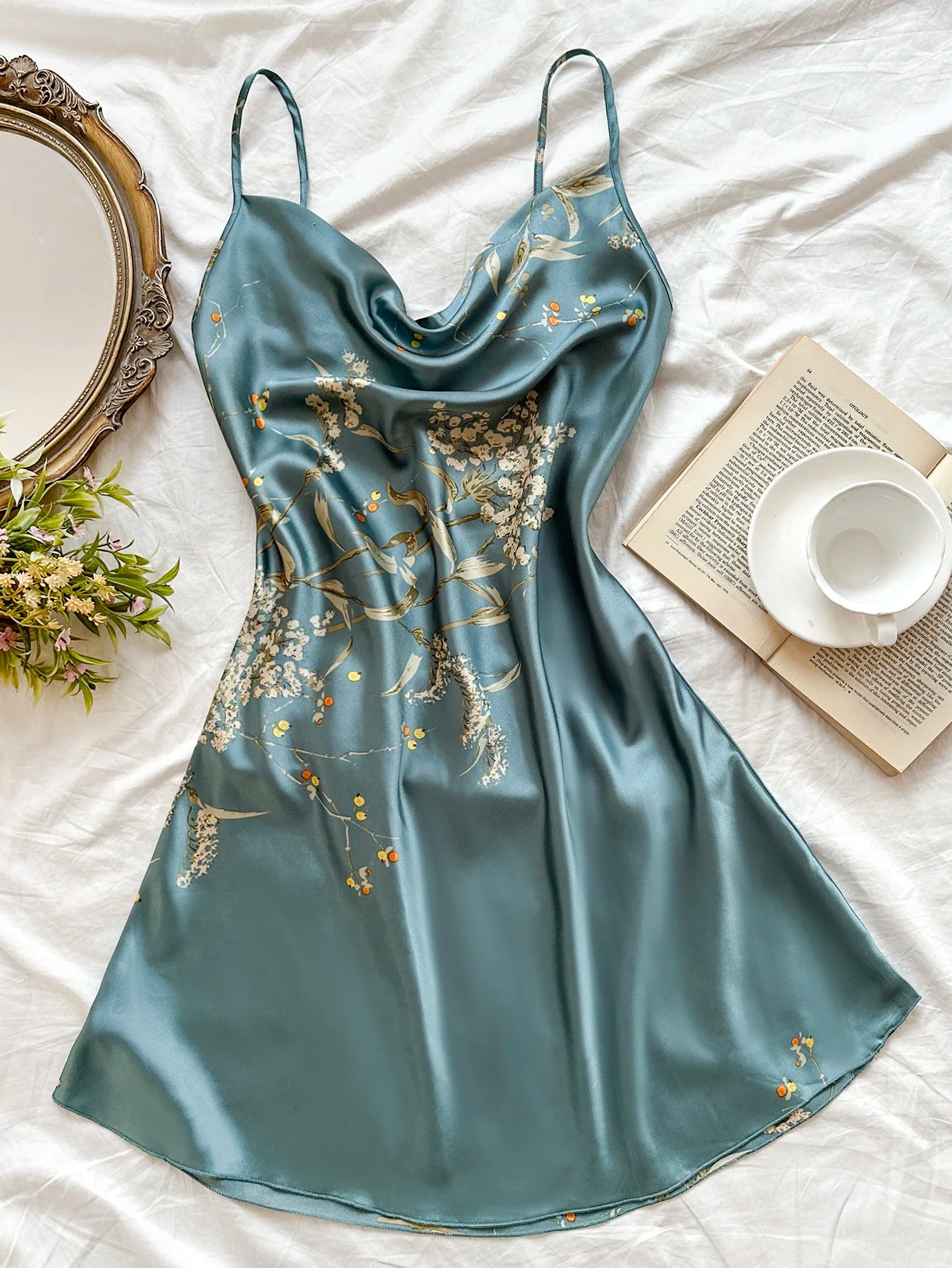 Hot style Women's Cherry Print Nightdress Casual sexy ladies silk pajamas slip dress for All Seasons