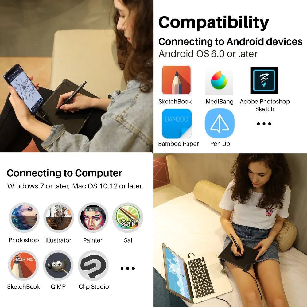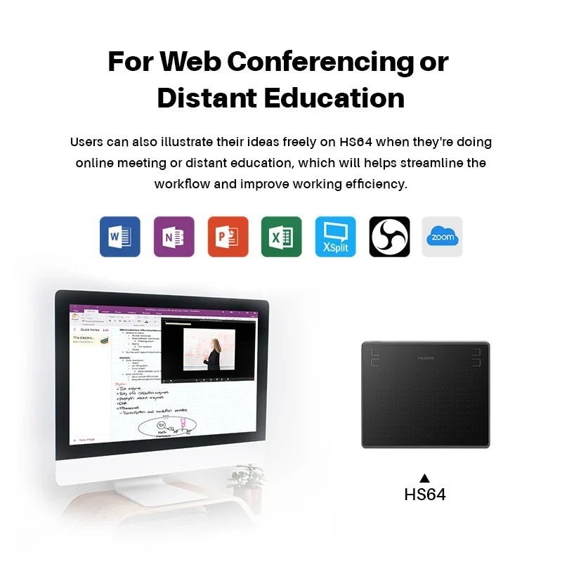 Huion HS64 6x4 Inch Graphics Tablet Ultrathin Drawing Tablet PW100 Battery-Free Pen Tablet Customized Press Keys Android Support