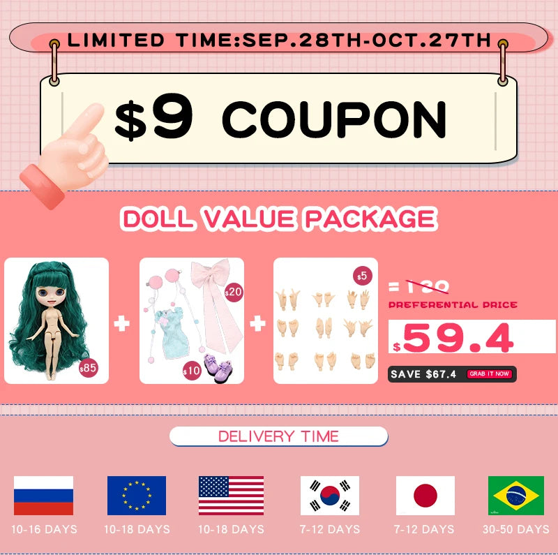 ICY DBS Blyth Doll Combination Including Clothes Shoes Hand Set AB Cosplay Dressing 1/6 BJD