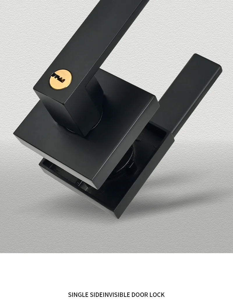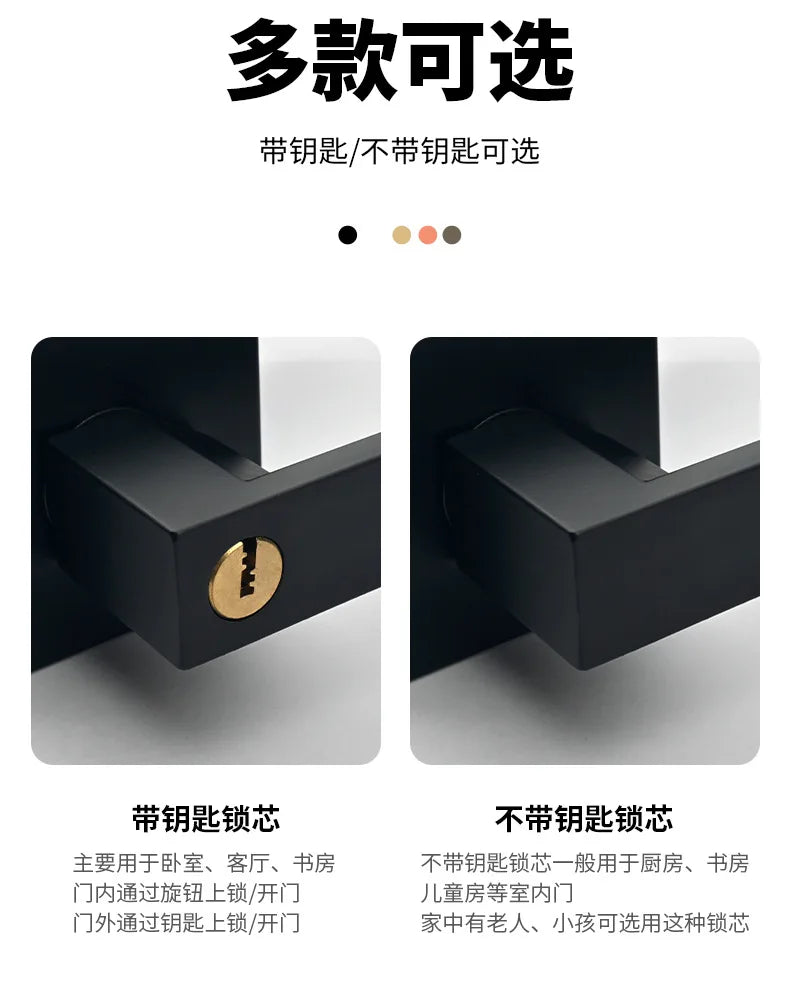 Indoor Door Lock, Aluminum Alloy Handle Adjustable Room Wooden Door Handle Square Minimalist American Heavy-duty Three Bar Lock