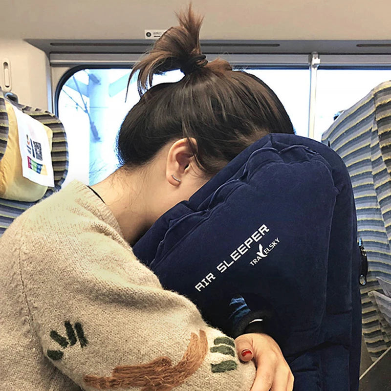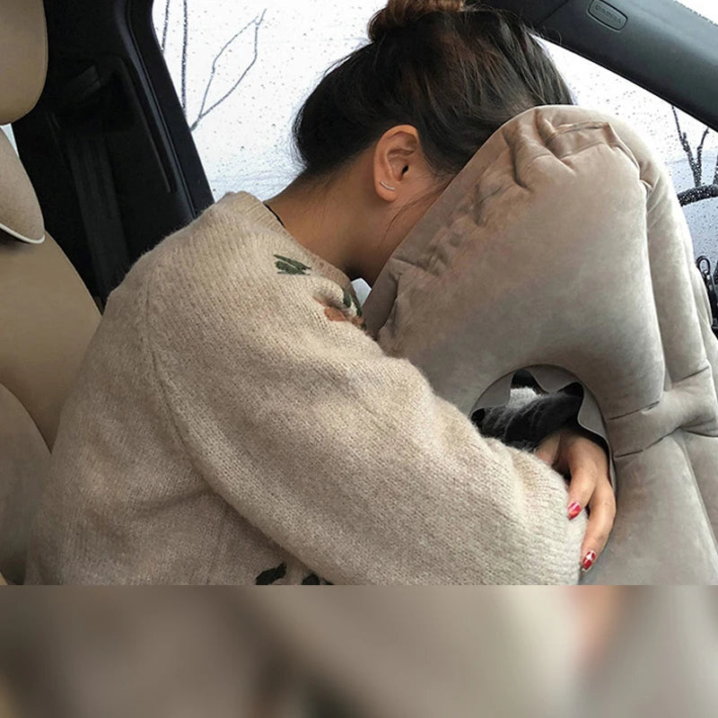 Inflatable Travel Pillow Travel Accessories For Long Haul Flights,Cars,Buses,Trains,Office Napping Sleeping Gray
