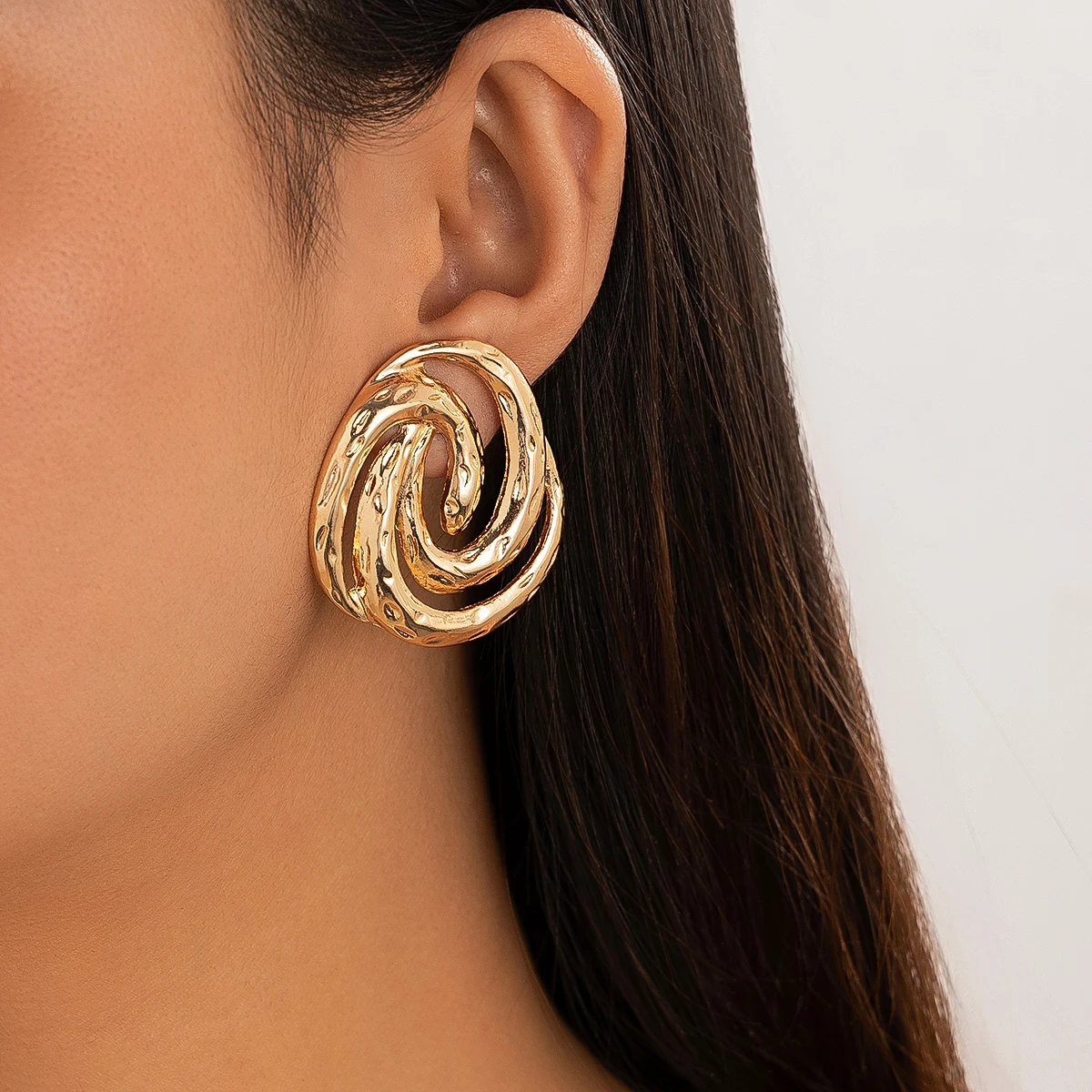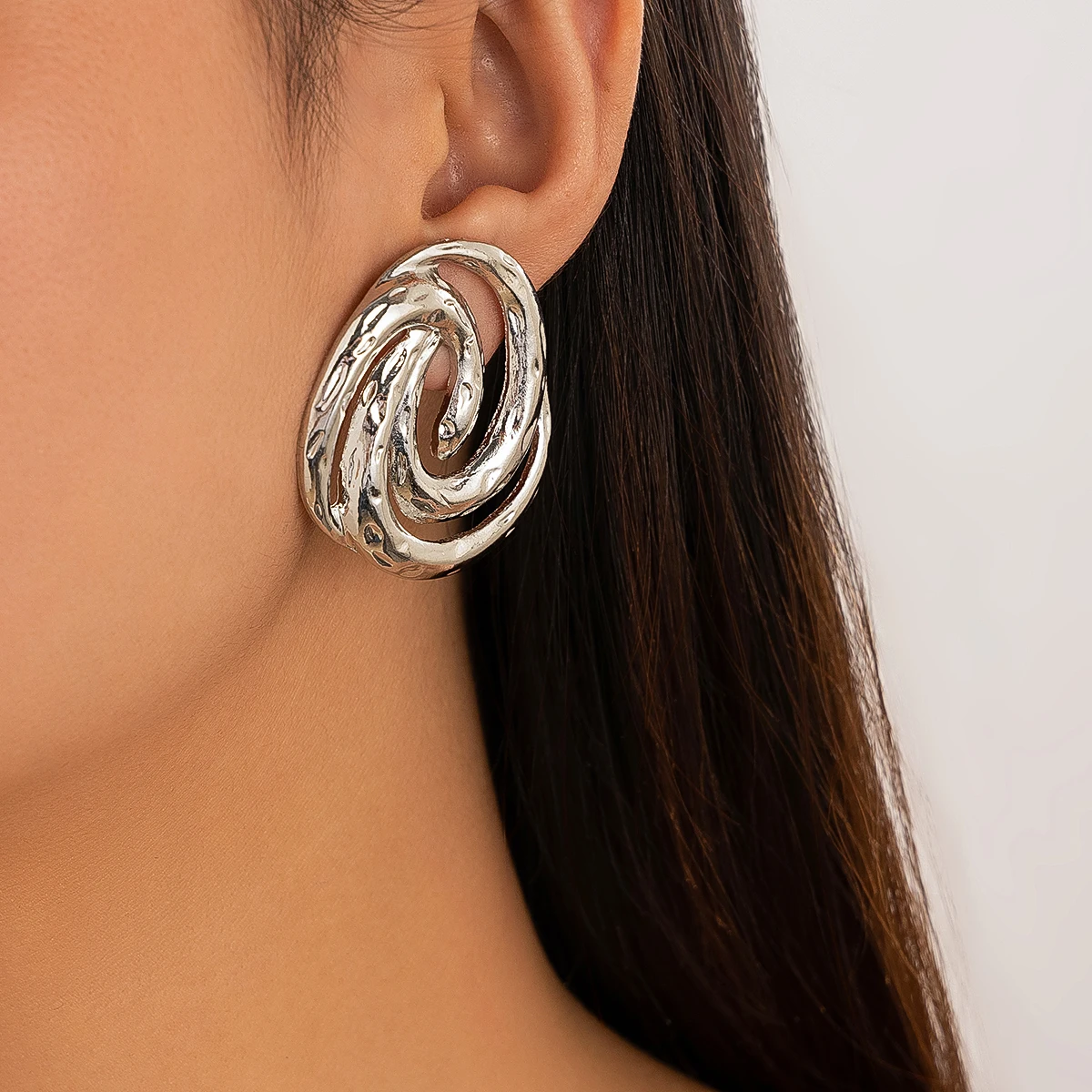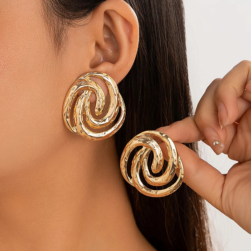 Ingemark Unique Punk Hollow Geometric Spiral Circle Stud Earrings for Women Girls Fashion Retro Piercing Earring Party Jewelry