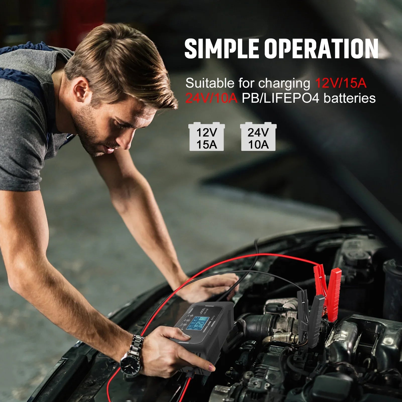 Intelligent Restoration Car Battery Charger 12V/15A 24V/10A Smart Charger for Automobile and Motorcycle Lead-Acid Battery