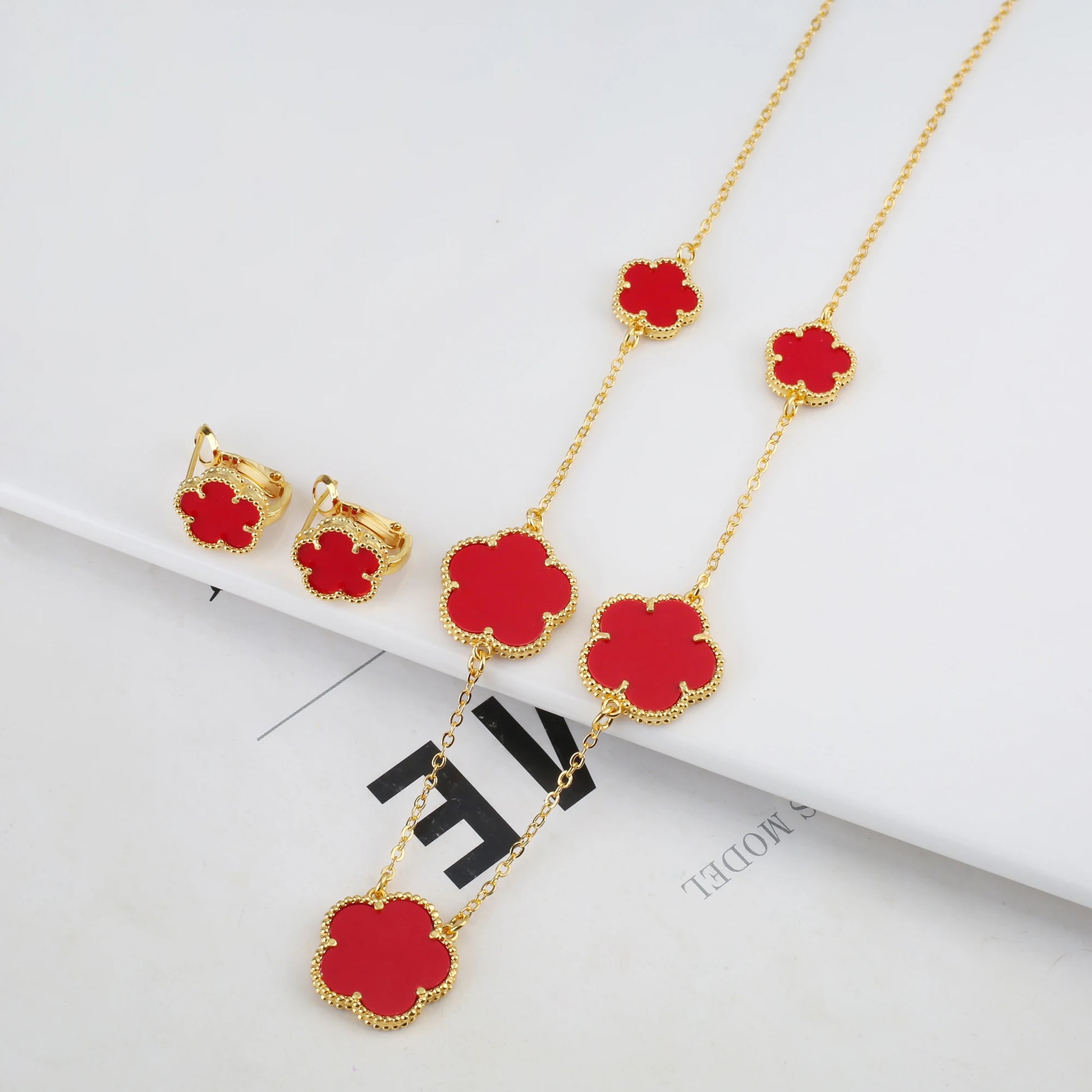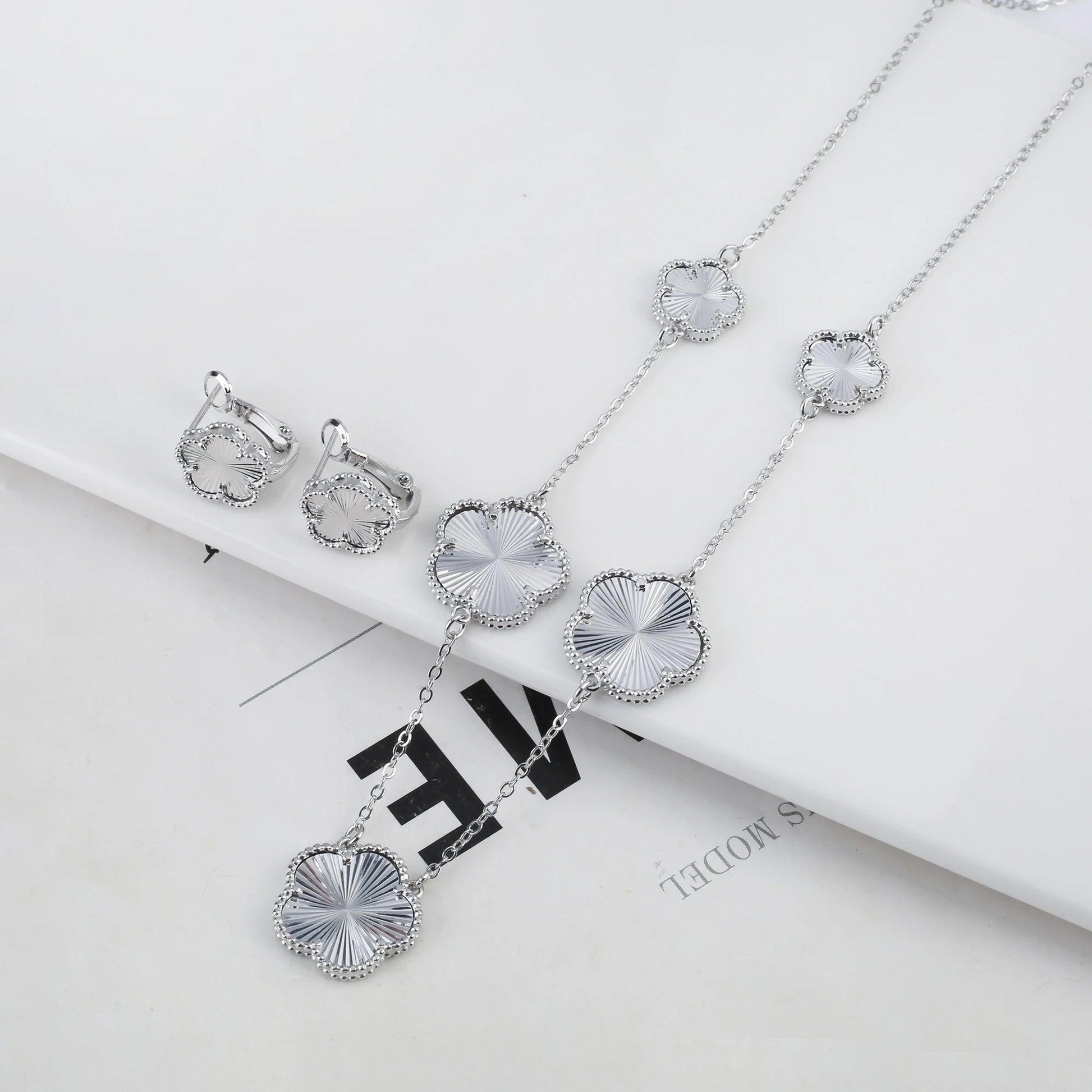 Irregular New Double Sided Natural Stone Shell Plant Five Leaf Flower Jewelry Set Necklace Earrings Women's High Quality Clover