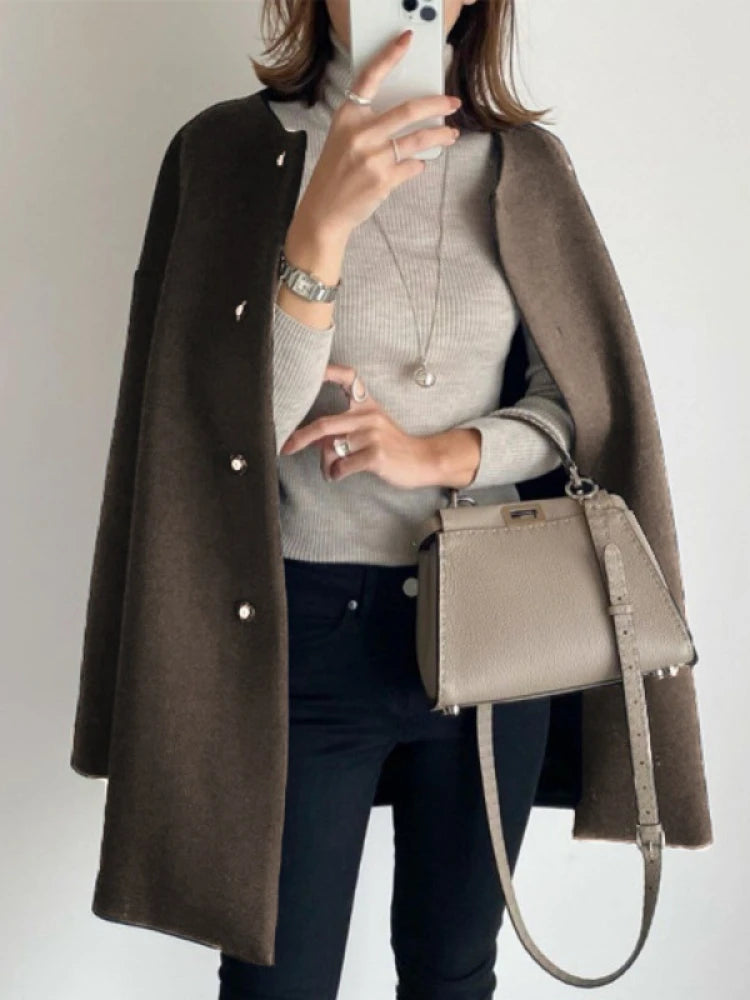 Japan Style Office Lady Elegant Solid Wool Coats Loose Casual Covered Button Jacket Autumn Winter All-match Blends Outwear