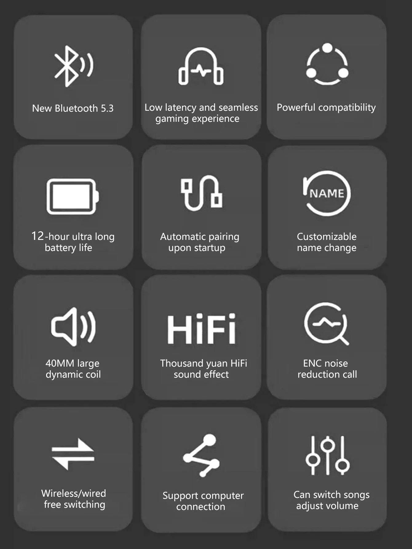 Jerry 5.3 Headset wireless headset, HIFI360° panoramic sound, rotary switch button, esports gaming wireless headset