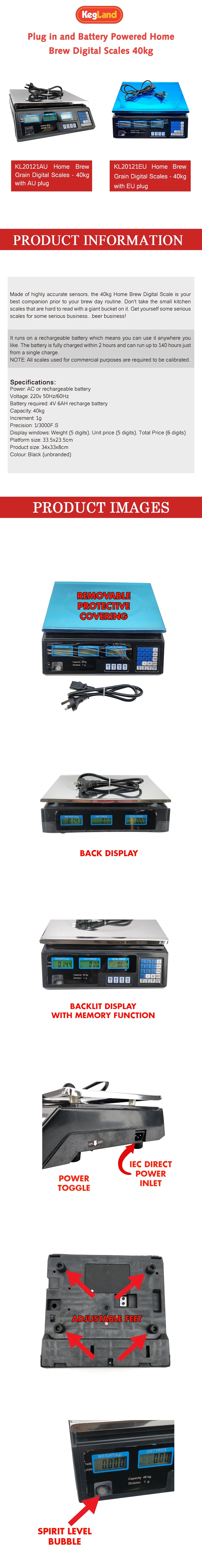 KegLand Grain Digital Scales - 40kg Kitchen Fruit Supermarkets Beer Brewing Equipment