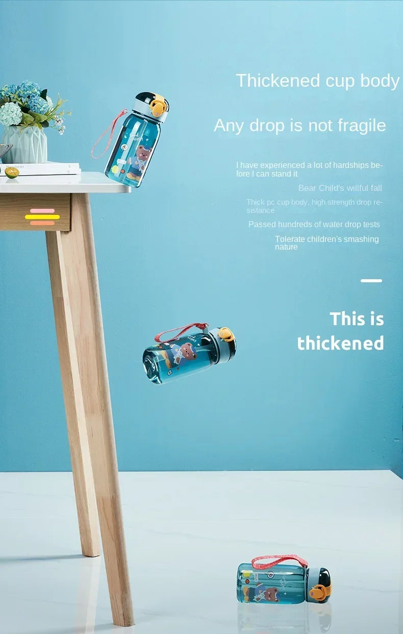 Kids Cartoon Water Sippy Cup with Straw Cute Bear Leakproof Water Bottles Outdoor Portable Drink Bottle Children's Lovely Cup