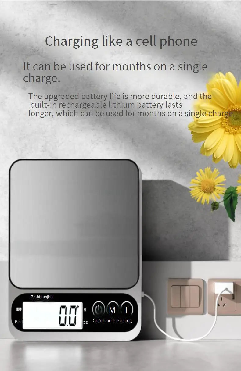 Three-in-One Model 10kg-0.1g [Charging Cable + Battery + Tray + Measuring Cup + Egg White Separator]