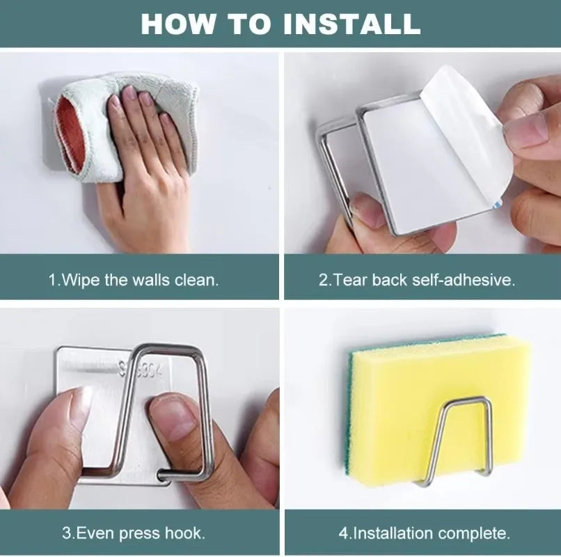 Kitchen Stainless Steel Sink Sponges Holders Self Adhesive Drain Drying Racks Wire Rag Organizer Hooks Multipurpose Wall Hooks