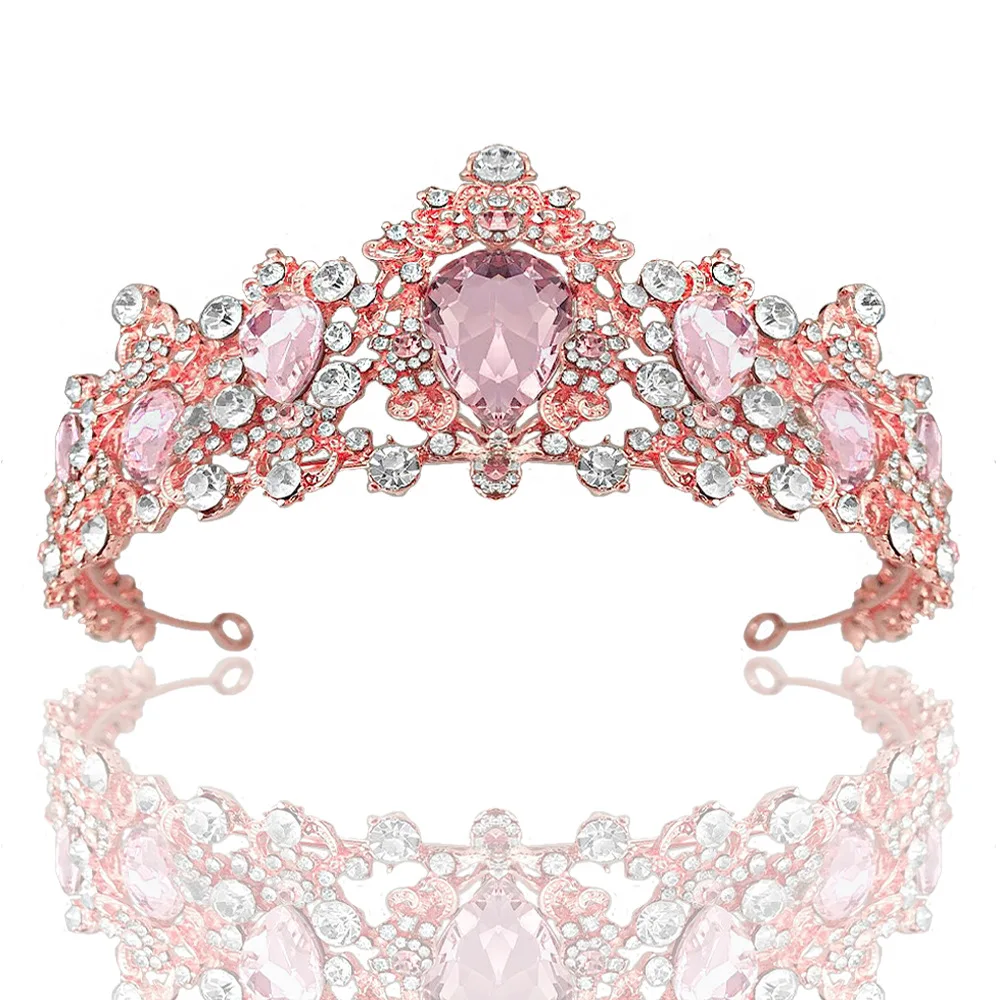 KMVEXO Tiaras Wedding Crown Bridal Hair Accessories Luxury Baroque Crystal Pink Queen Crown Women Adult Gift Party Hair Jewelry