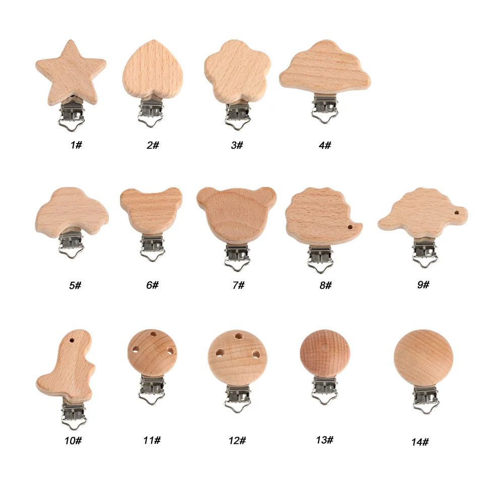 Kovict 5Pcs 19 Styles Beech Wooden Clips Metal Bracket DIY Pacifier Chain Handmade Crafts Accessories