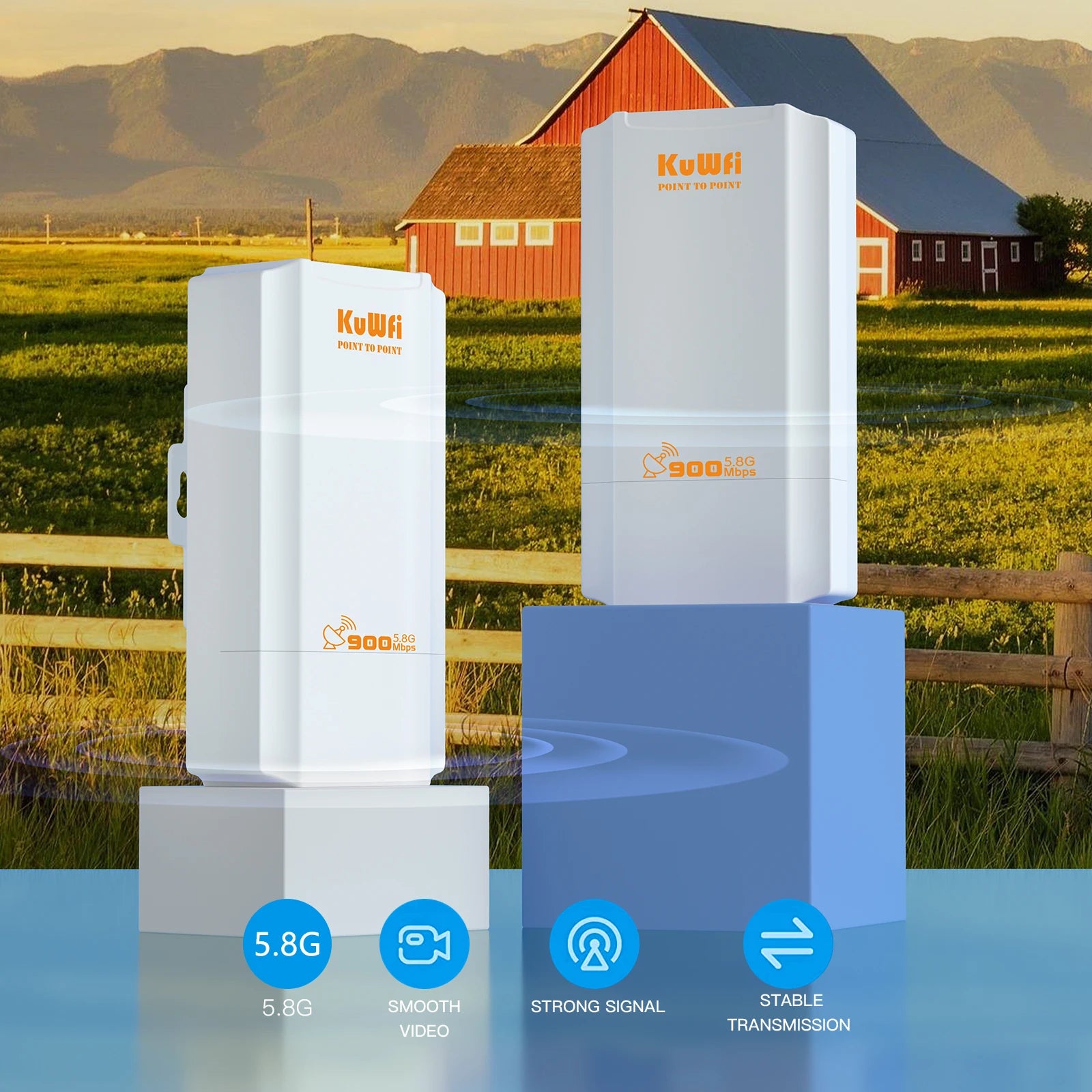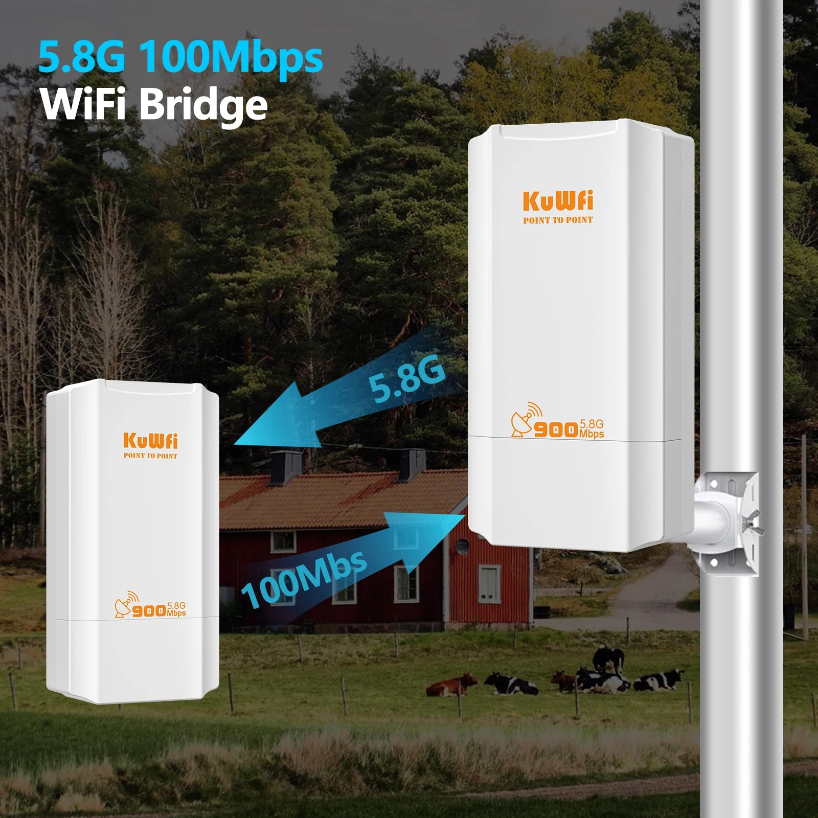 KuWFi 900Mbps Outdoor Wifi Repeater 5.8G Wireless Bridge Wifi CPE Bridge Long Range Extender AP Access Point 2KM Wifi Coverage