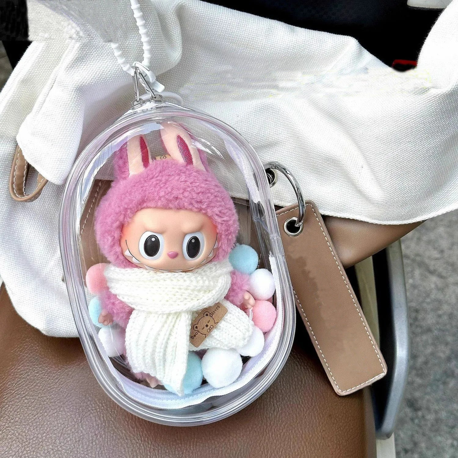 Labubu Protect Case 15cm Labubu Sitting Party Cotton Doll Shoulder Pain Bag PVC Storage Bag Labubu Walk Bag Dustproof
