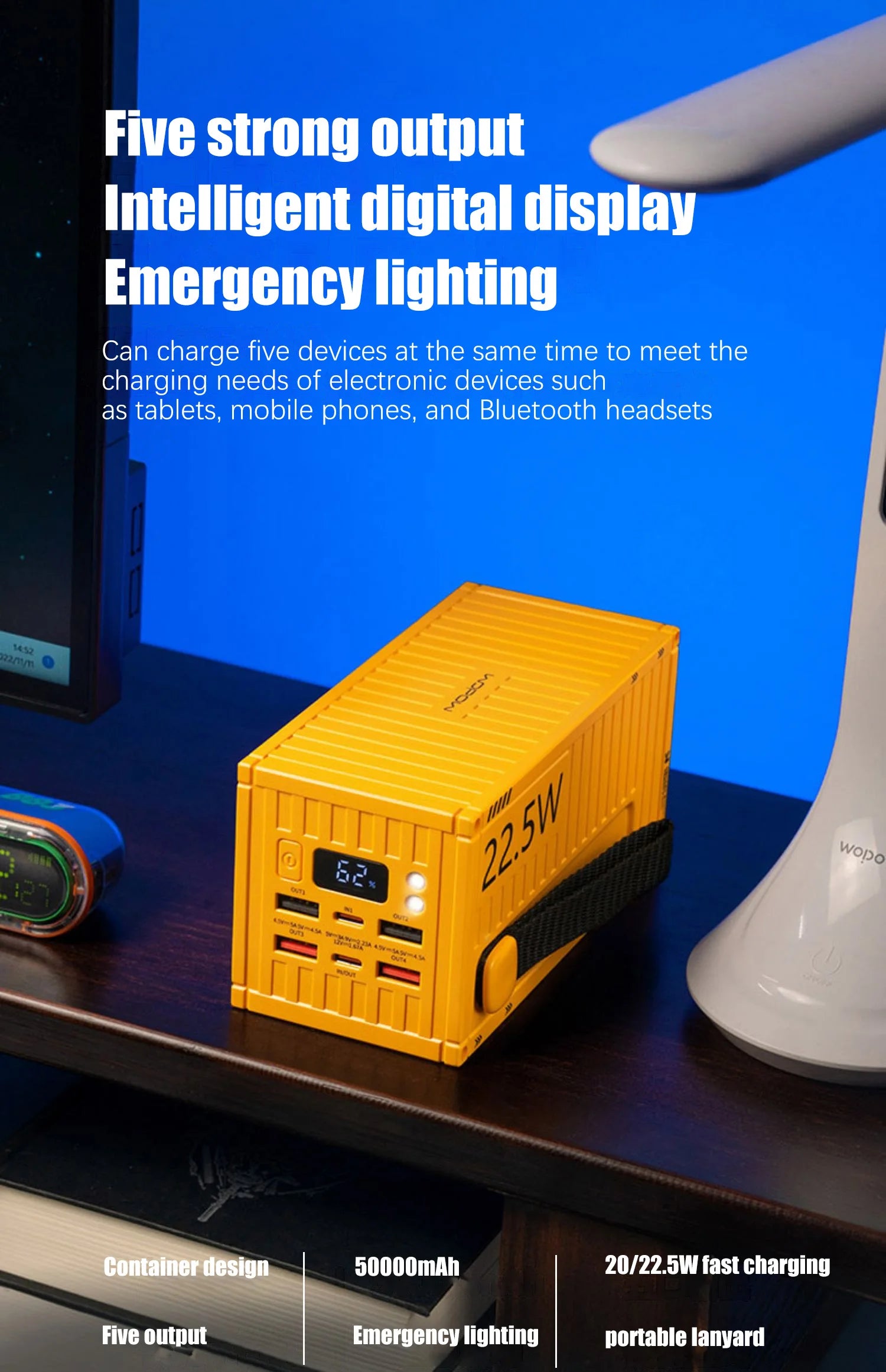 Large Capacity 50000mAh Power Bank 22.5W PD Fast Charging Auxiliary Battery for Outdoor Camping High-Speed External Spare