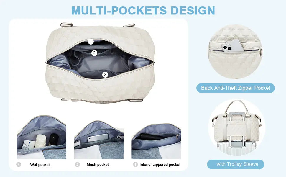 Large Duffle Tote Bag Weekender Carry on Overnight Bags for Women Travel With Trolley Sleeve Wet Pocket, Sports Tote Gym Bag
