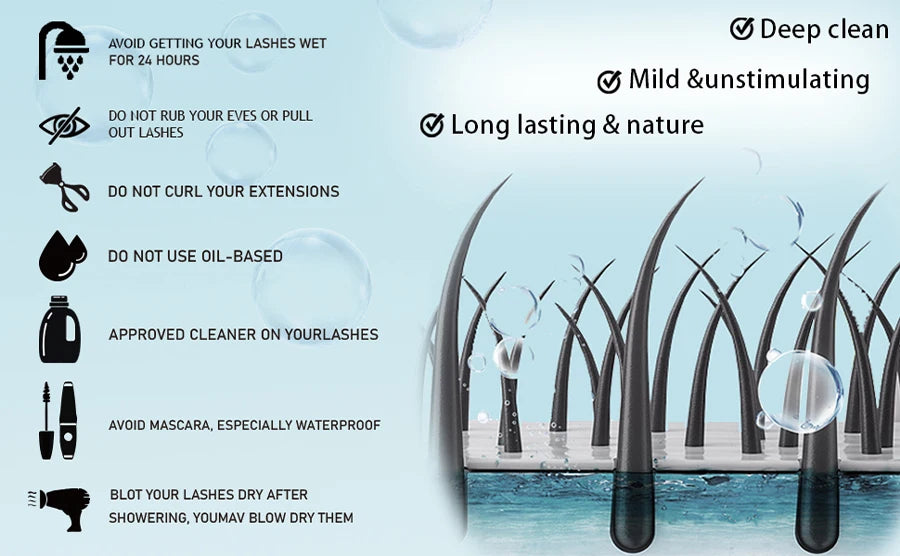Lash Extension Shampoo 100ml Women Foam Mousse Eyelash Rinse Bottle Lashes Shampoo and Makeup Remover Pads with Brush 7pcs/Set