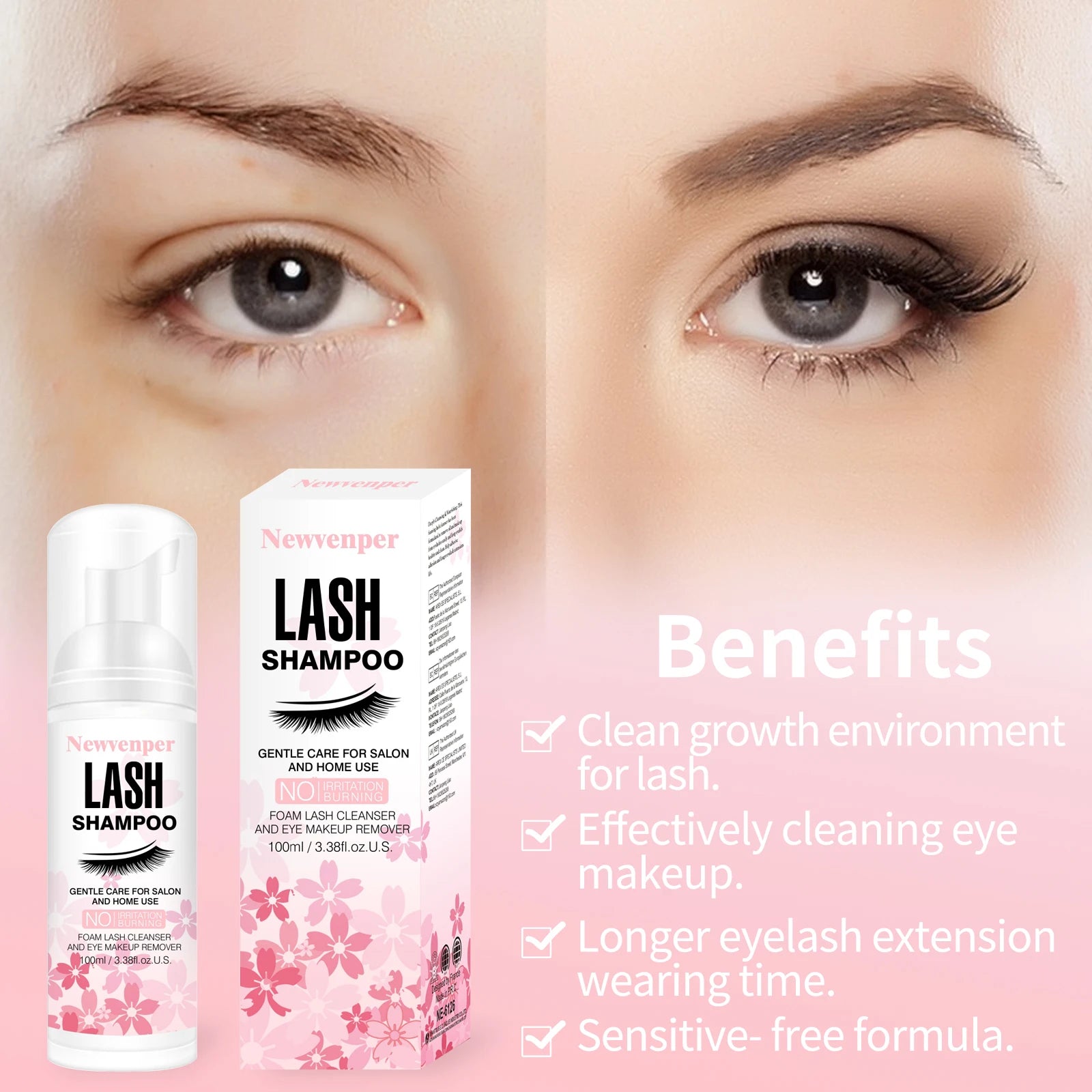 Lash Shampoo for Eyelash 100ML + Brush & Mascara Wand Eyelid Foaming Cleansing, Extension Cleanser Remover,Makeup Remover