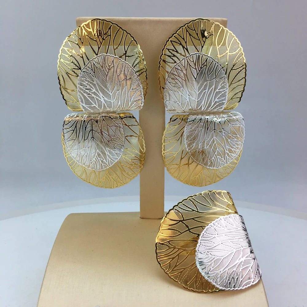 Latest Luxury Brazilian Wedding Jewelry Set Dubai Gold Plated Bridal Exaggerate Big Jewelry Sets FHK17245