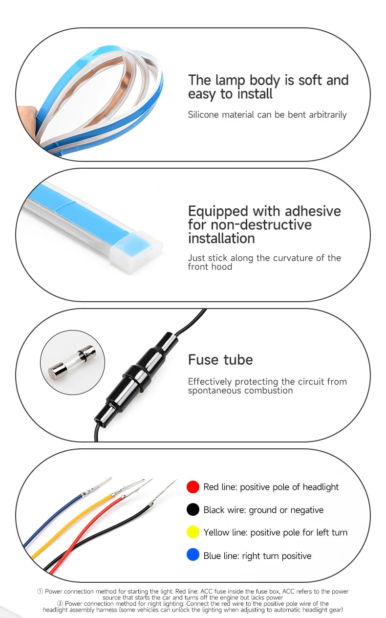 LED Car Hood Decorative Light Strip Start Scan Dynamic Ambient Light Car Daytime Running Light DRL With Turn Signal Lamp 12V