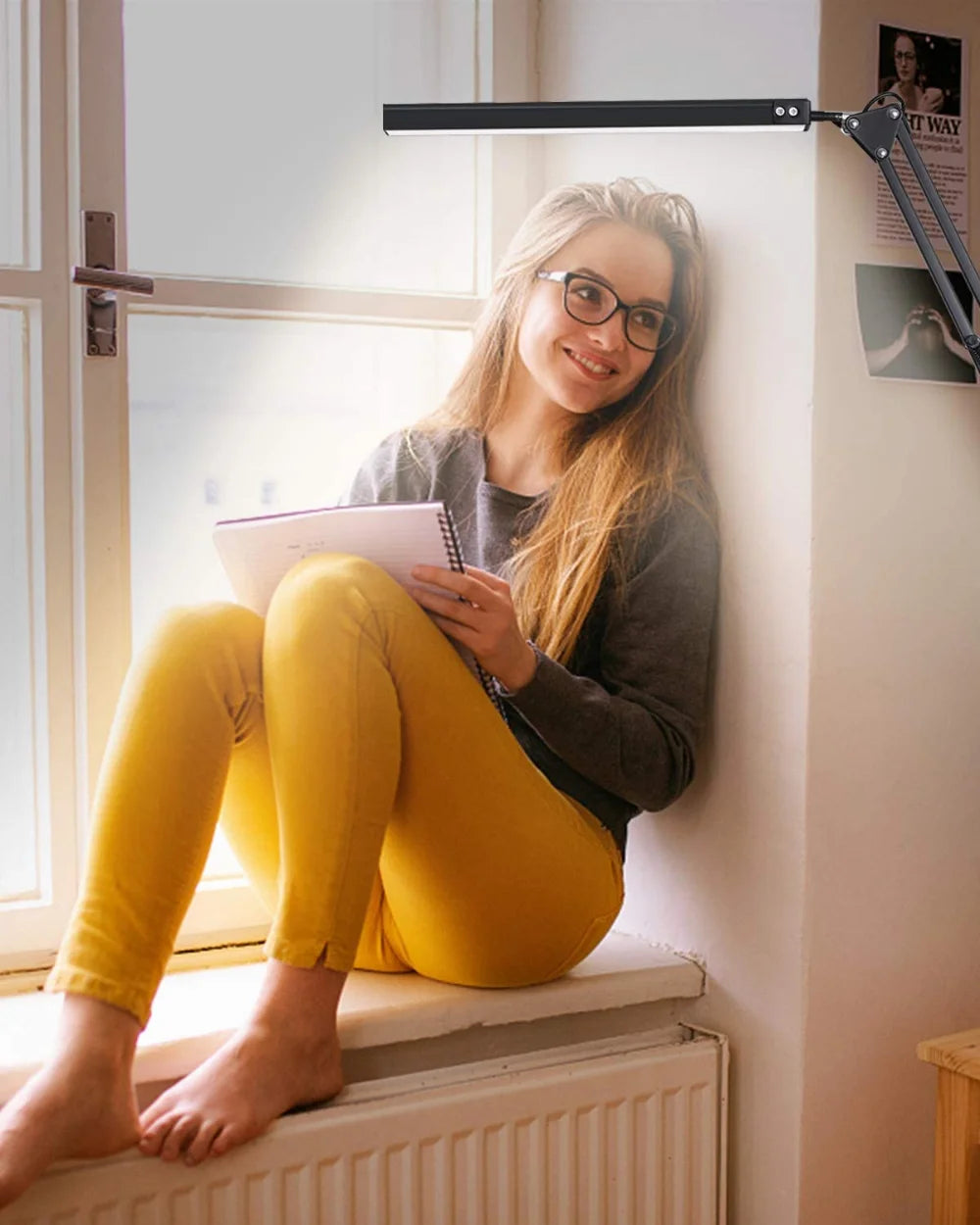 LED Desk Lamp with Clamp 10W Swing Arm Desk Lamp Eye-Caring Dimmable Desk Light with 10 Brightness Level, 3 Lighting Modes