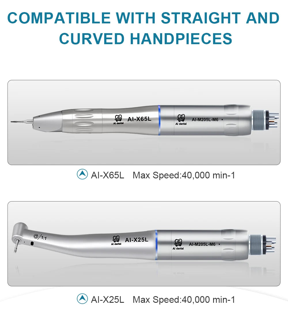 LED Illumination Dental Low Speed Air Motor With Micro Power Generator E-type 2/4/6 Hole Internal Water Spray AI-M205LG