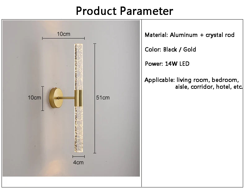 Features: LED Light Modern Crystal Rod Wall Light