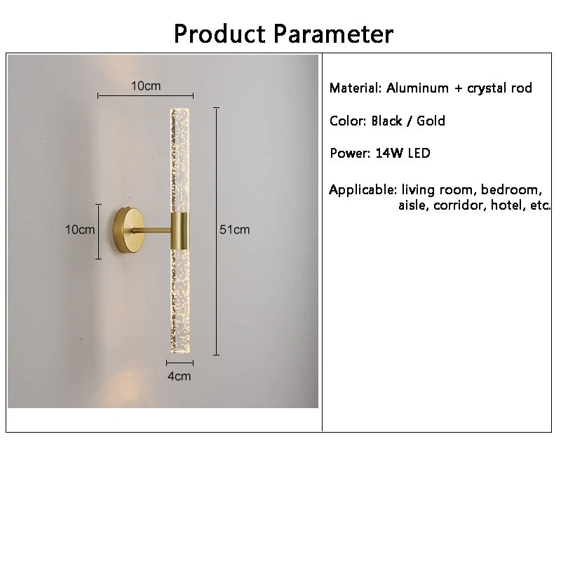 LED Light Modern Wall Light Bedroom Bedside Living Room Wall Lamp Crystal Rod Nordic Aisle Corridor Interior Lighting Fixture