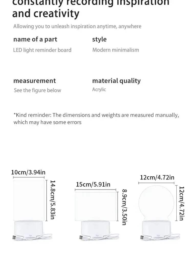 LED Light Note Board USB-Powered with Pen Acrylic Dry Erase Board Clear Desktop Note Message Soft Lights Desk Lamp Gift