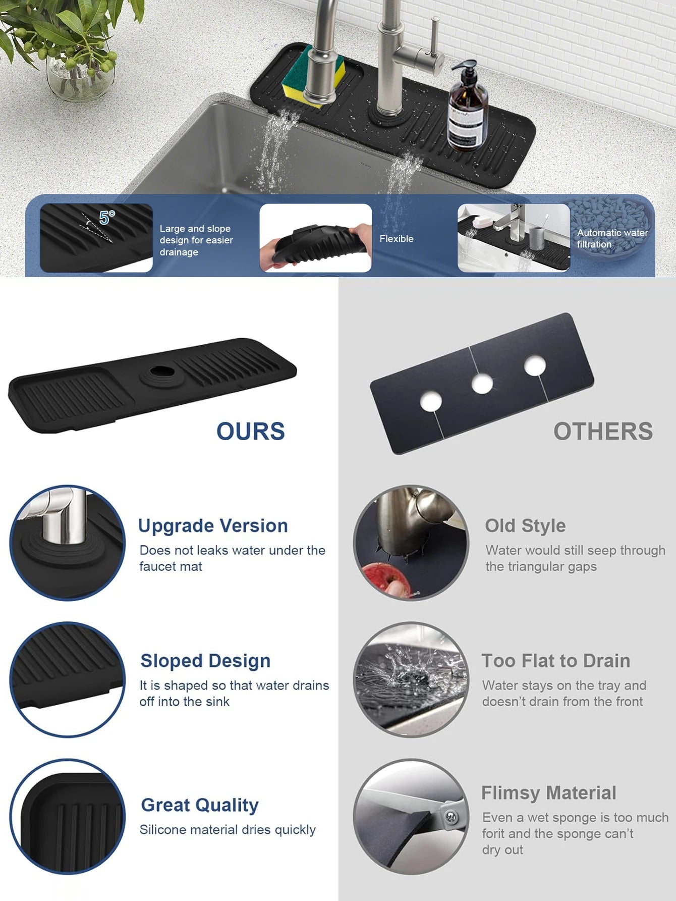 Leeseph Kitchen Silicone Sink Faucet Mat Splash Guard for Sink Faucet Absorbent Sink Protectors Mat Kitchen Sink Gadgets