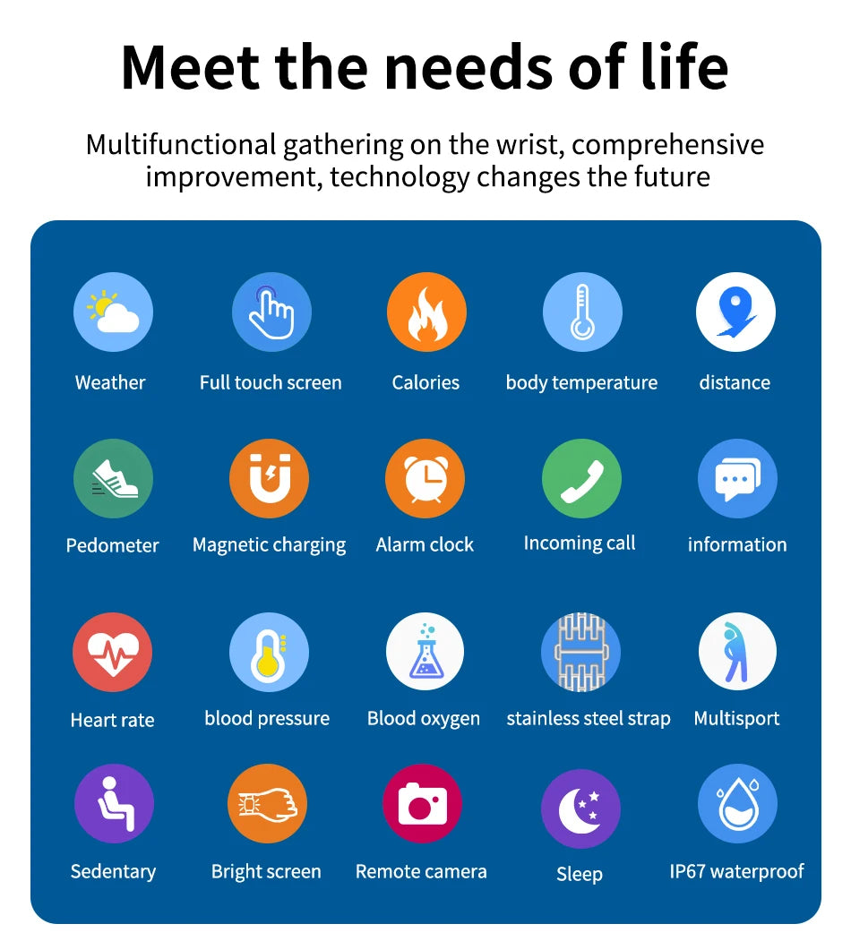 Function: Passometer,fitness tracker,sleep tracker,Message Reminder,Call Reminder,Push Message,Big Three Needles,24 hour instruction,Chronograph,Alarm Clock,Small Second,Permanent Calendar,Power Reserve,week,Month,Heart Rate Tracker,Interactive Music,Thermometer,Calendar