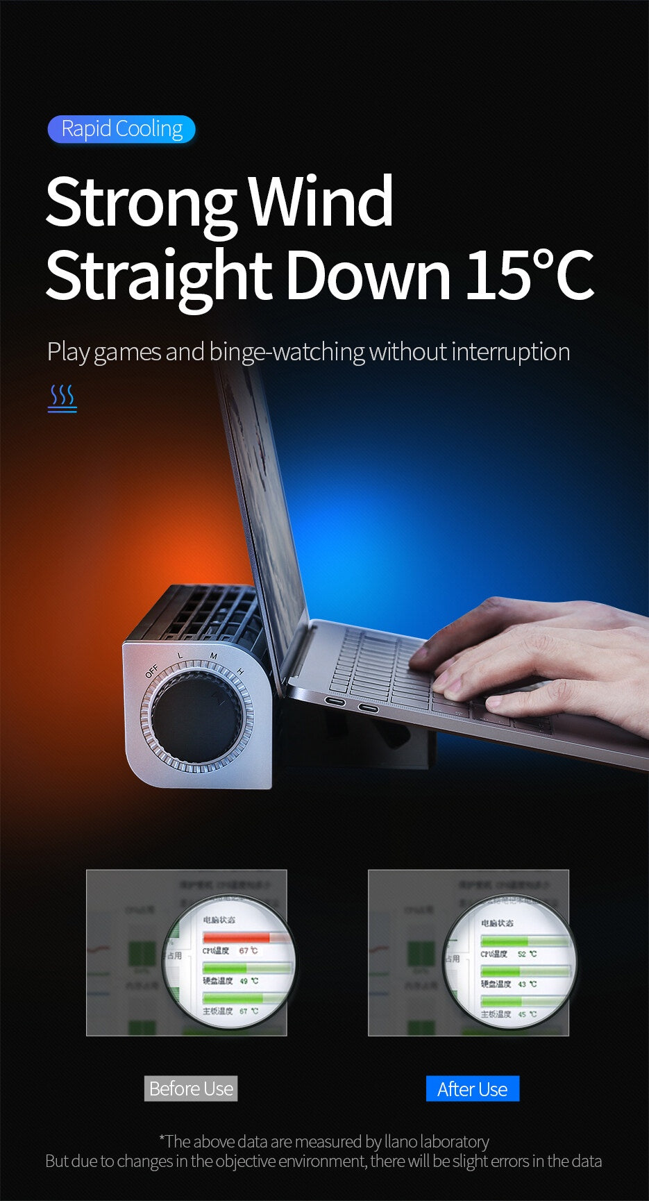 llano Laptop Radiator Laptop Cooler Laptop Stand Adjustable Size Wind Speed With RGB Light