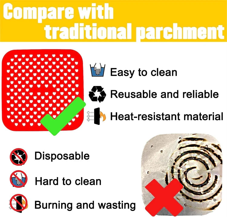 LMETJMA 3Pcs Silicone Air Fryer Lines Reusable Air Fryer Liners 8.5Inch Square Non-Stick Air Fryer Mat for Frying Steaming JT153