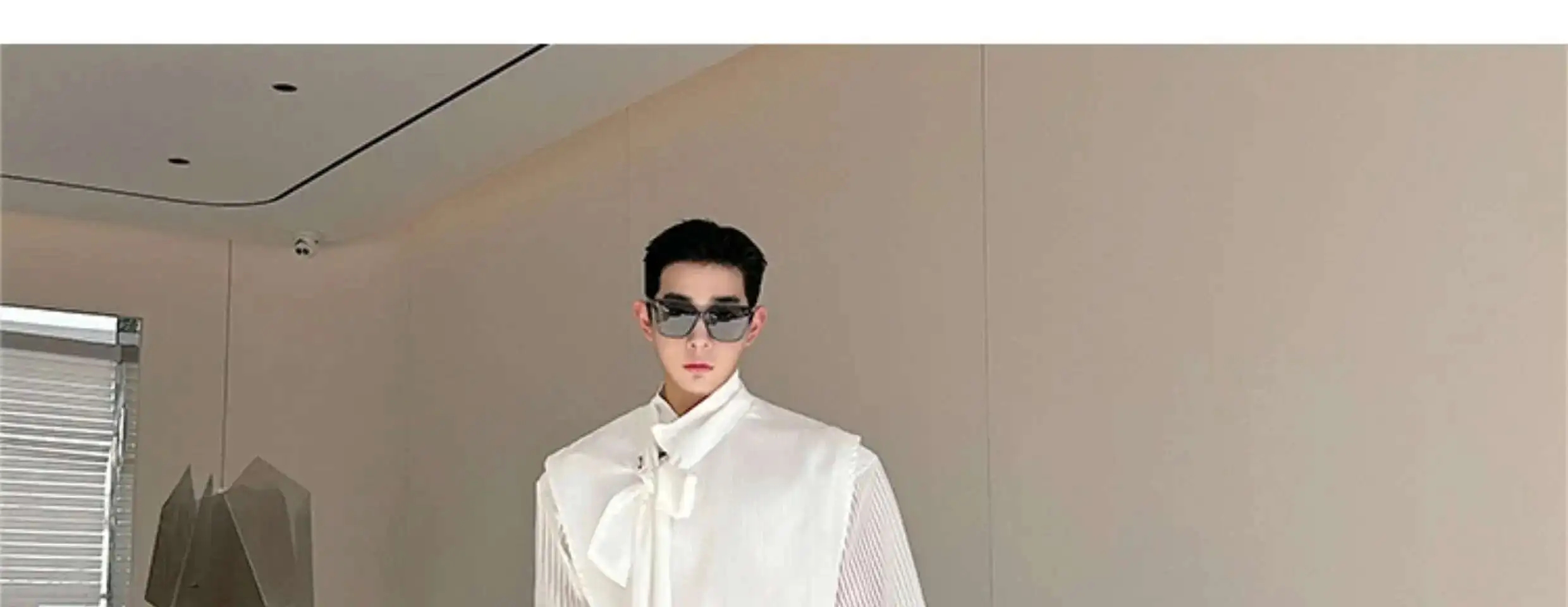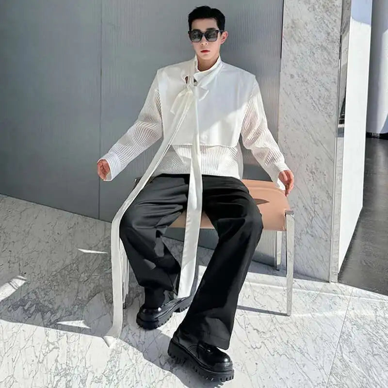 LUZHEN Stylish Personality Ribbon Decorate Translucent Long Sleeve Shirts Men's Elegant 2025 New Stylish Fake Two Piece LZ2413