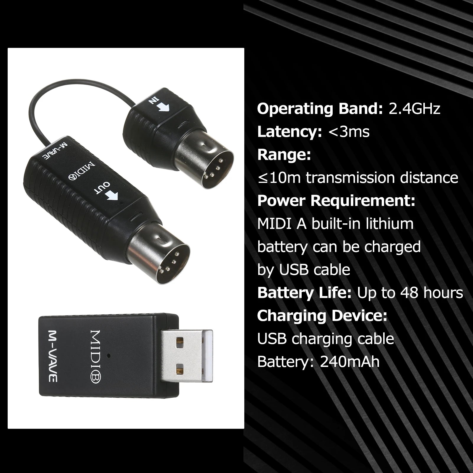 M-VAVE MS1 Mini Wireless Transmission System MIDI System MIDI Wireless Adapter Plug and Play Support Wins System Smart Phone