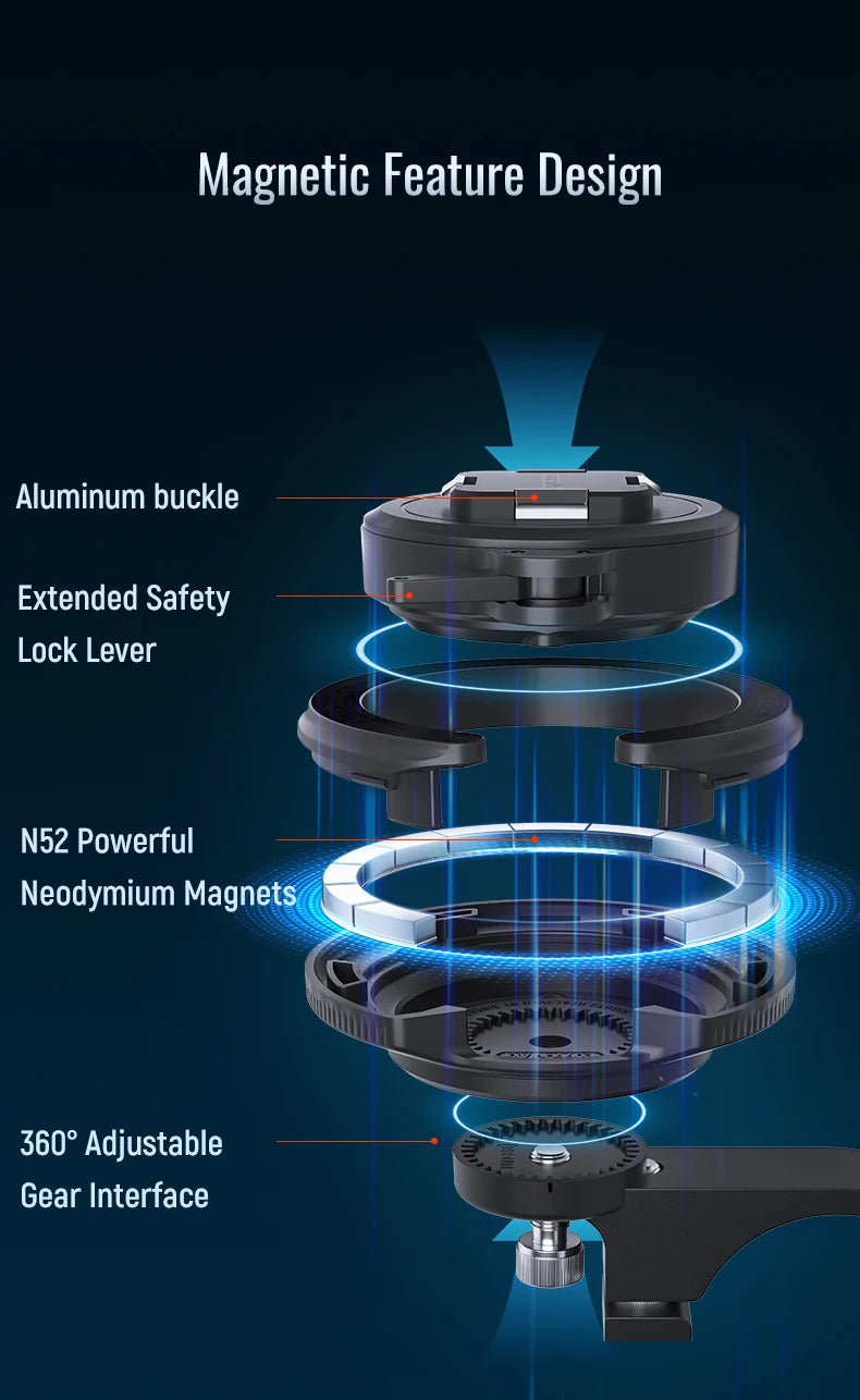 Magnetic Bike & Motorcycle Phone Mount - Universal Smartphone Holder with GPS Support, Secure Magnetic Attachment for Cycling