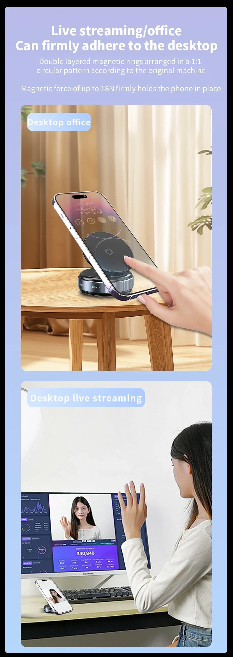Magnetic Car Mount Mobile Phone Holder Vacuum Adsorption 360° Rotation Super Strong Suction Bracket for Iphone12-16 Smartphone
