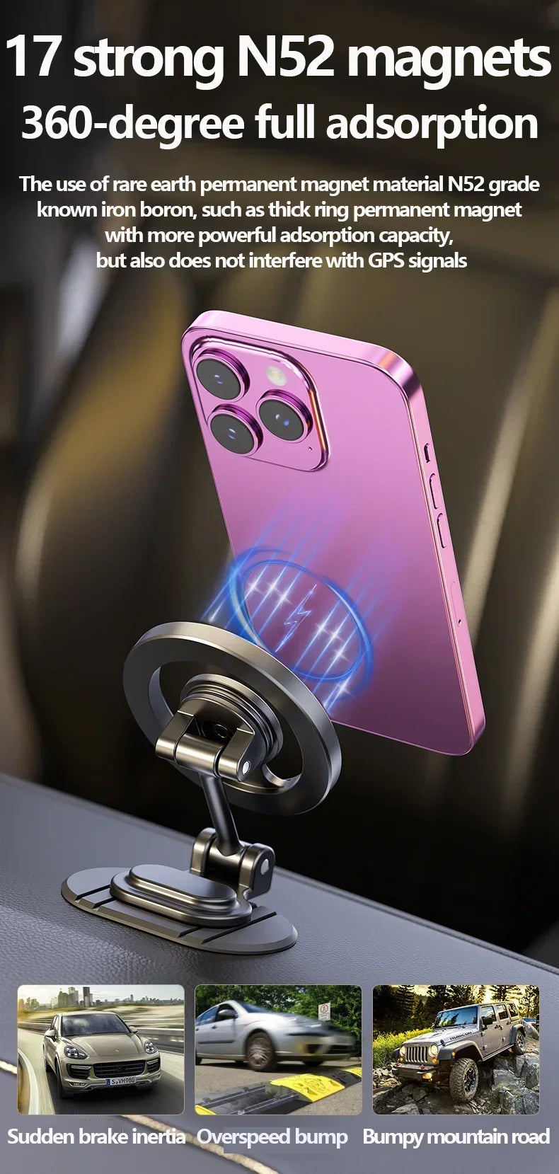 Magnetic Car Phone Holder All-Metal 1040° Rotation Cell Phone Stand For Magsafe iPhone 16 15 14 13 12 Pro Max Dashboard Mount