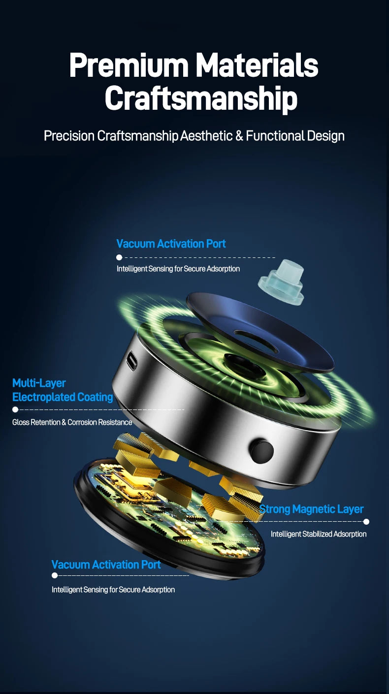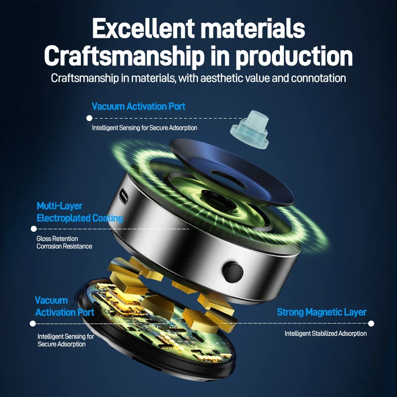 Magnetic Mobile Phone Holder Intelligent Car Mount Cell 360°Rotation Black Technology Stable Suction Universal Vacuum Adsorpti