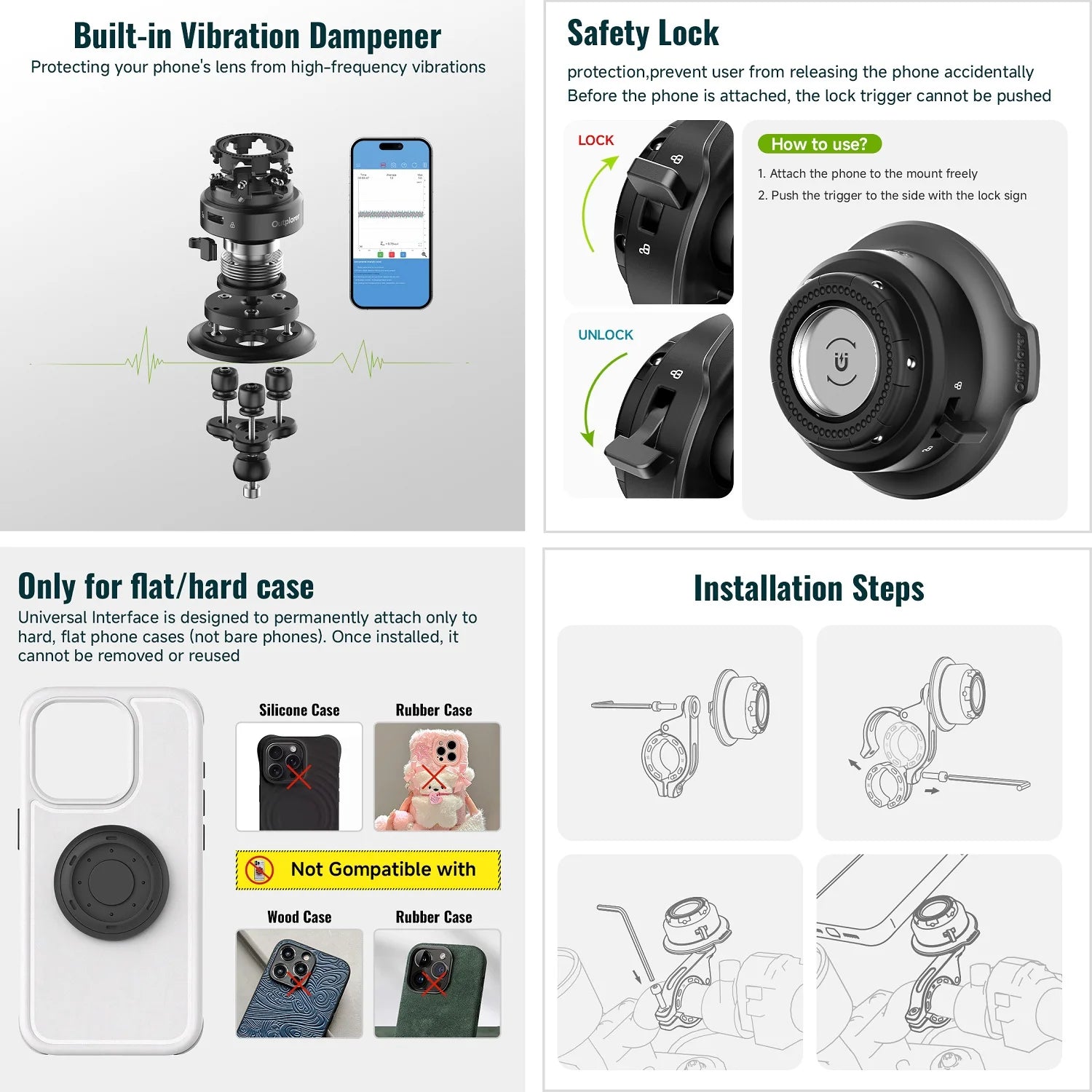 Magnetic Motorcycle Phone Mount Holder with Vibration Dampener & Secure Lock Handlebar Phone Mount for Motorcycle Bike Scooter