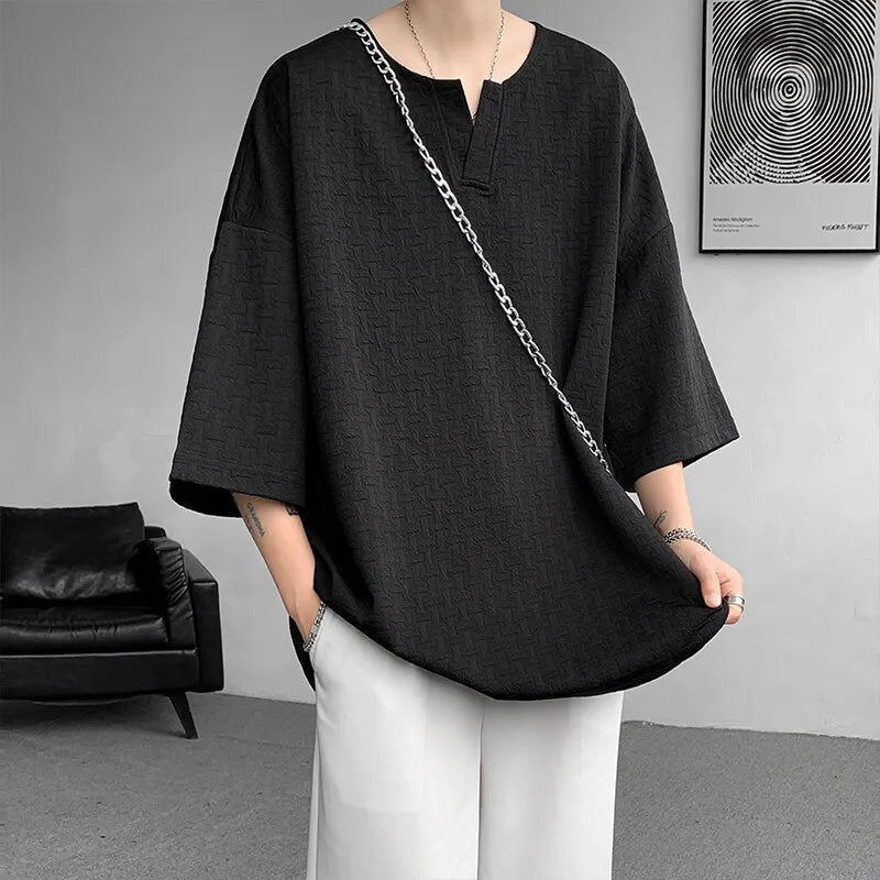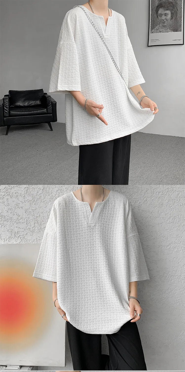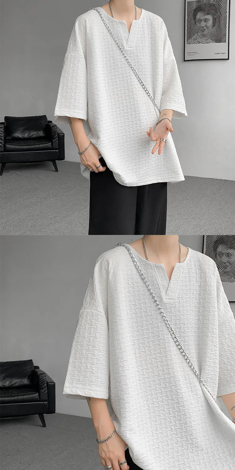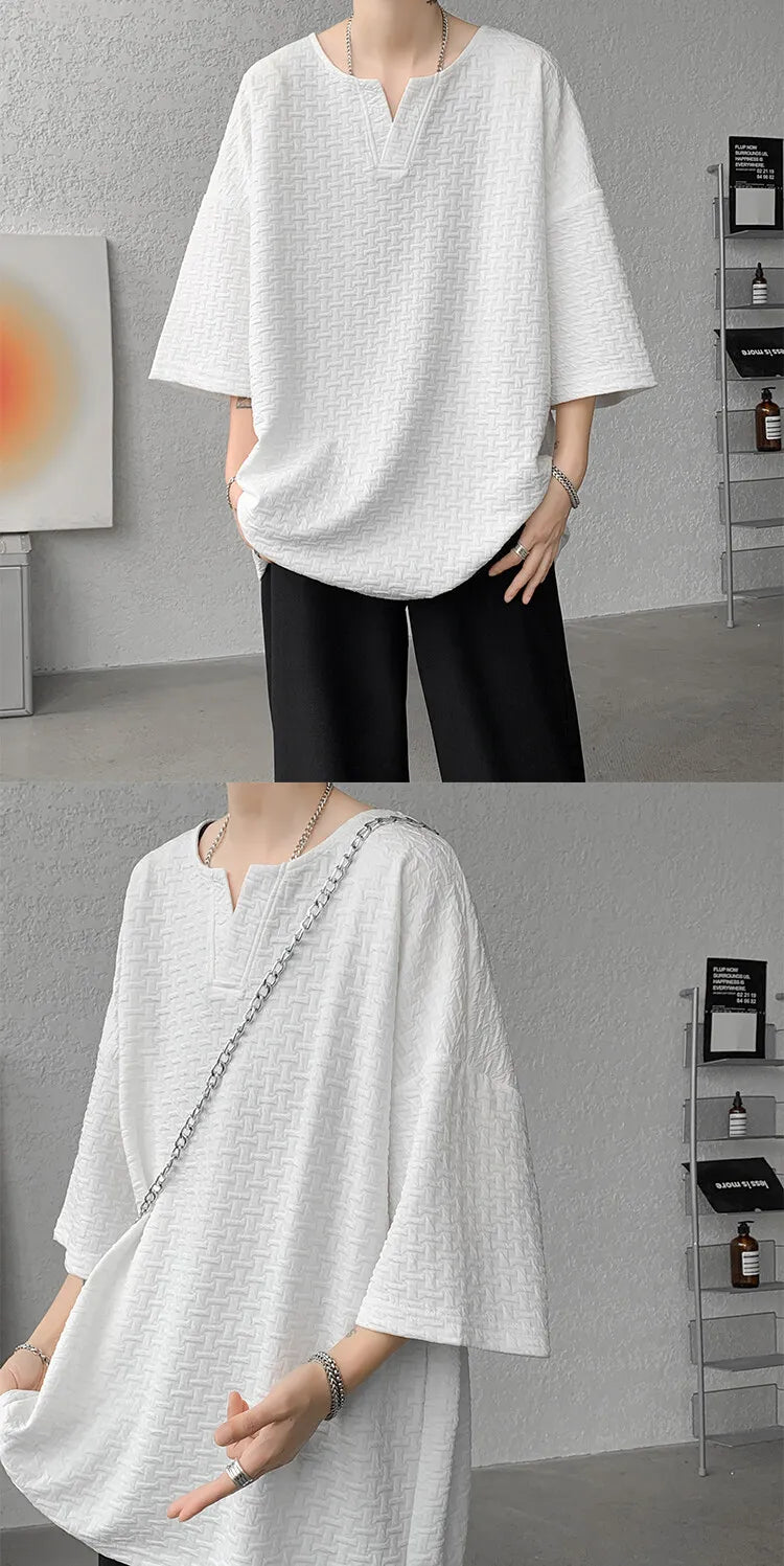 Mens V Neck Loose Fit Tshirt Summer Fashion Comfort Breathable Casual Streetwear Trendy Tee Lightweight Premium Fabric Crew Neck