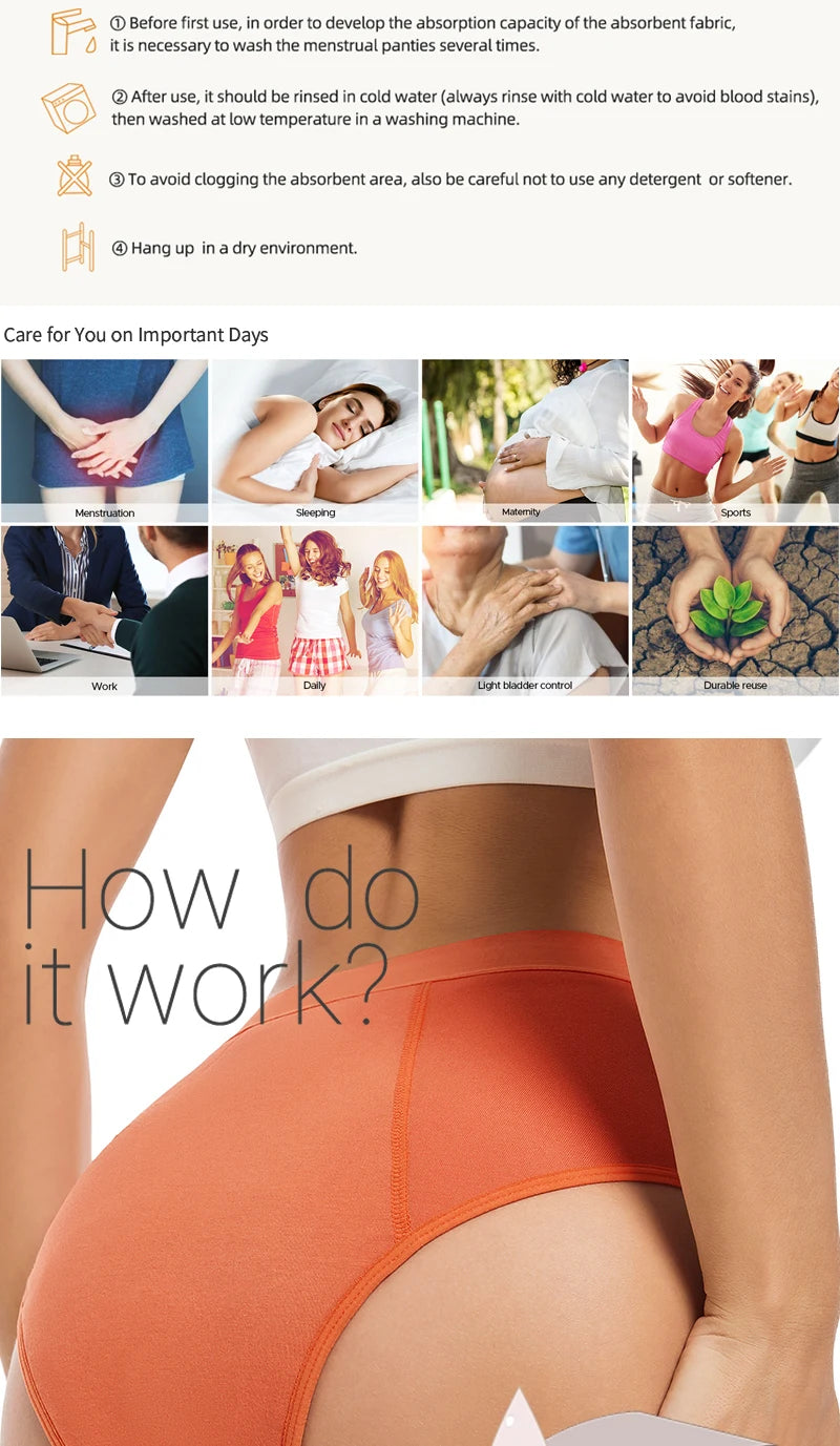 Menstrual Panties Women Abundant Flow Menstrual Period Panties High Waist Menstrual Cycle Absorbent Underwear Leak Proof Panties