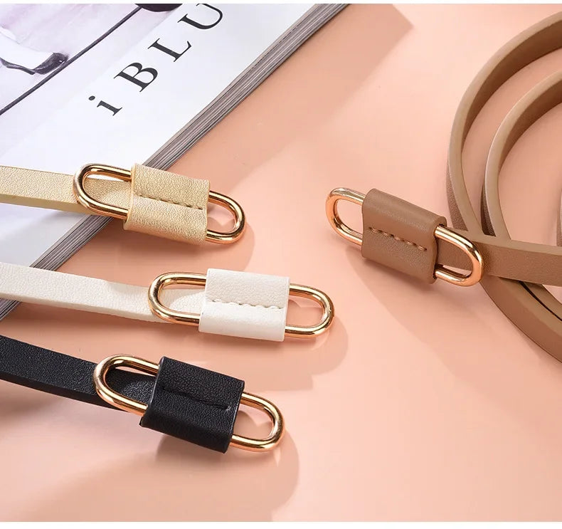 Metal Buckle Thin Stretchy Waist Belt Striped Elastic Waistband Elegant Women Girdle Female Belt Fashion Apparel Accessories New