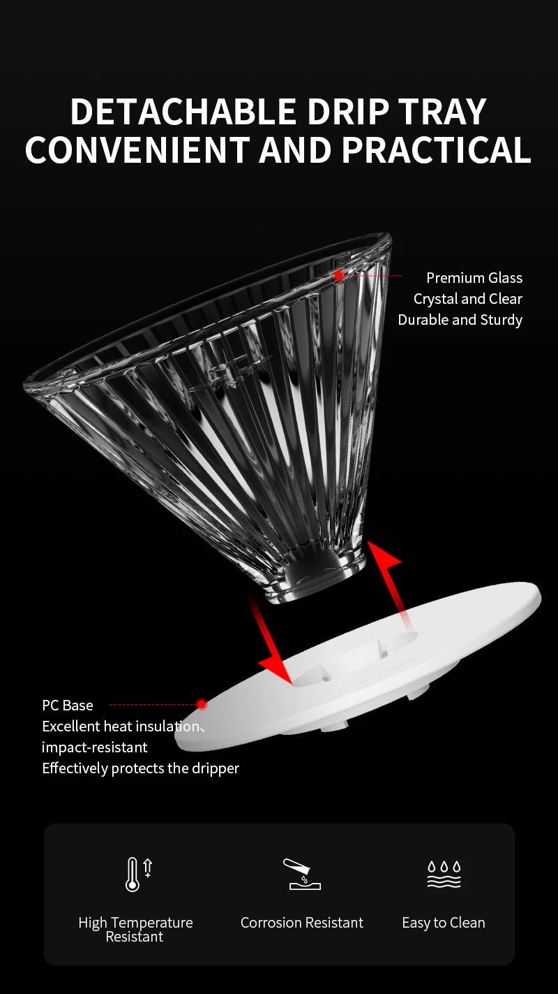 MHW-3BOMBE Pour Over Coffee Dripper Glass Coffee Dripper Coffee Filter Cup Reusable Coffee Drip Filter Cone Coffee Maker