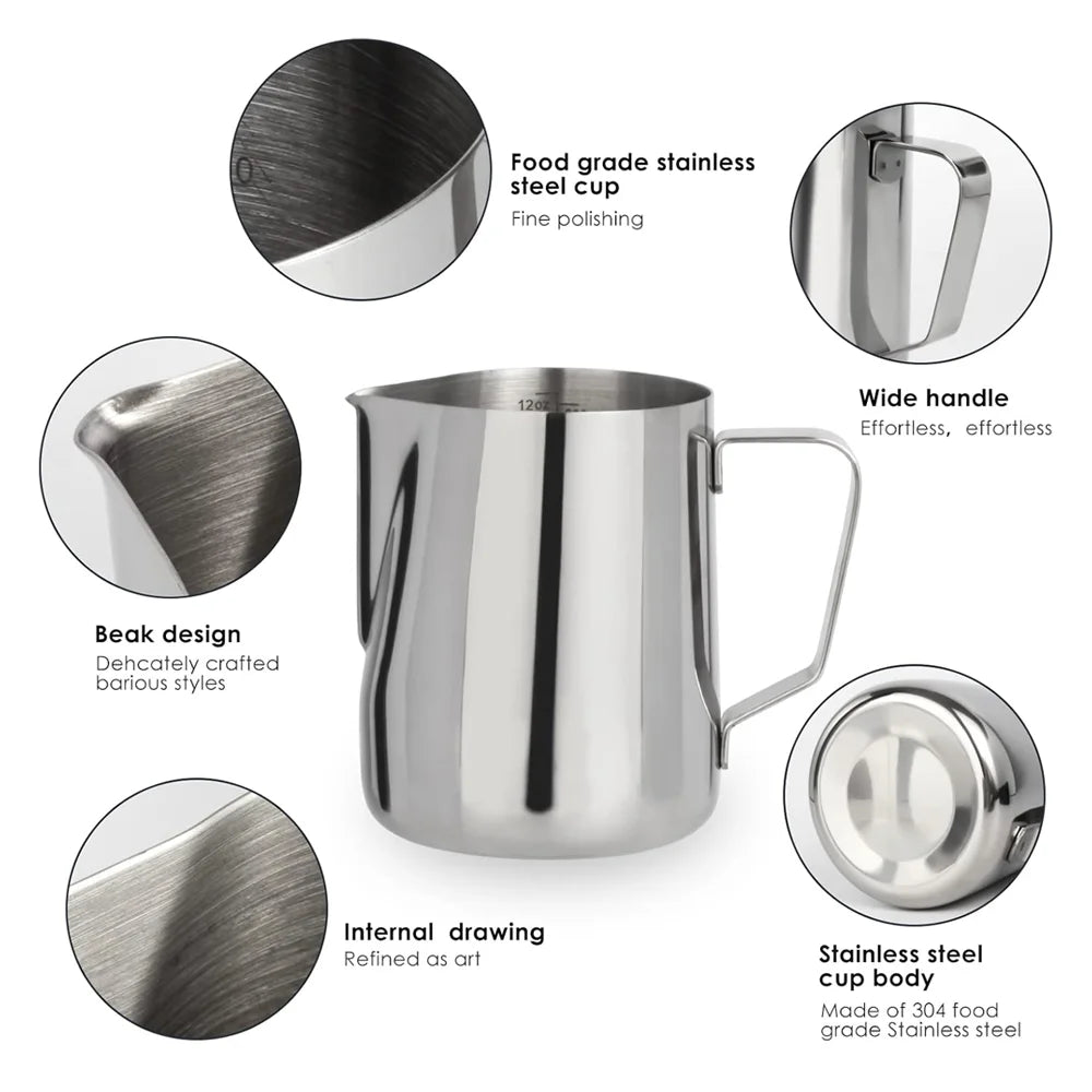 Milk Frothing Pitcher Stainless Steel Jug Milk Frother Steamer Cup for Espresso Latte Art Barista Coffee Accessories Easy Clean