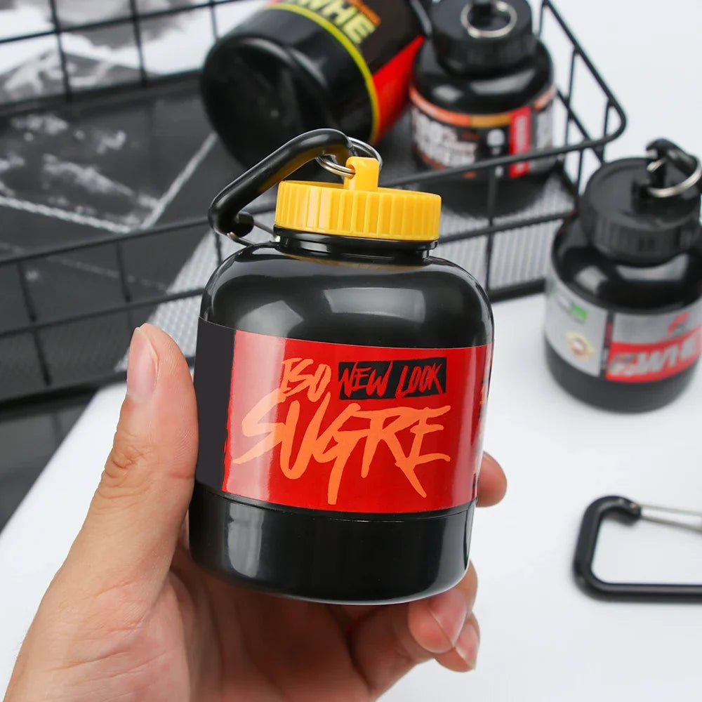 Mini Portable Protein Powder Bottles with Keychain Health Funnel Medicine Bottle Small Water Cup Outdoor Sport Storage