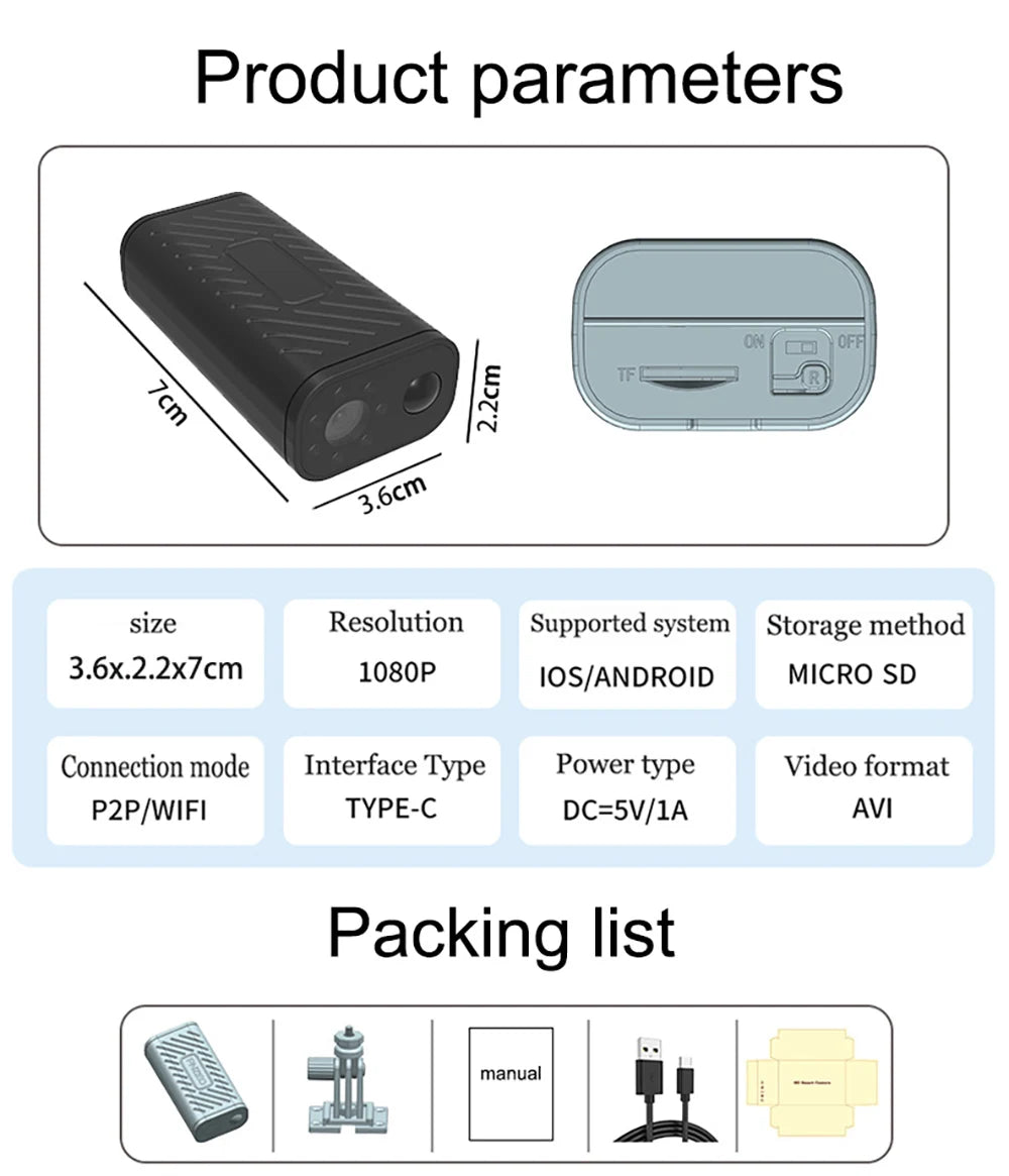 Mini Smart Home Security Camera Indoor Wireless WiFi Remote View Outdoor waterproof Camera Human Detection Sleep standby