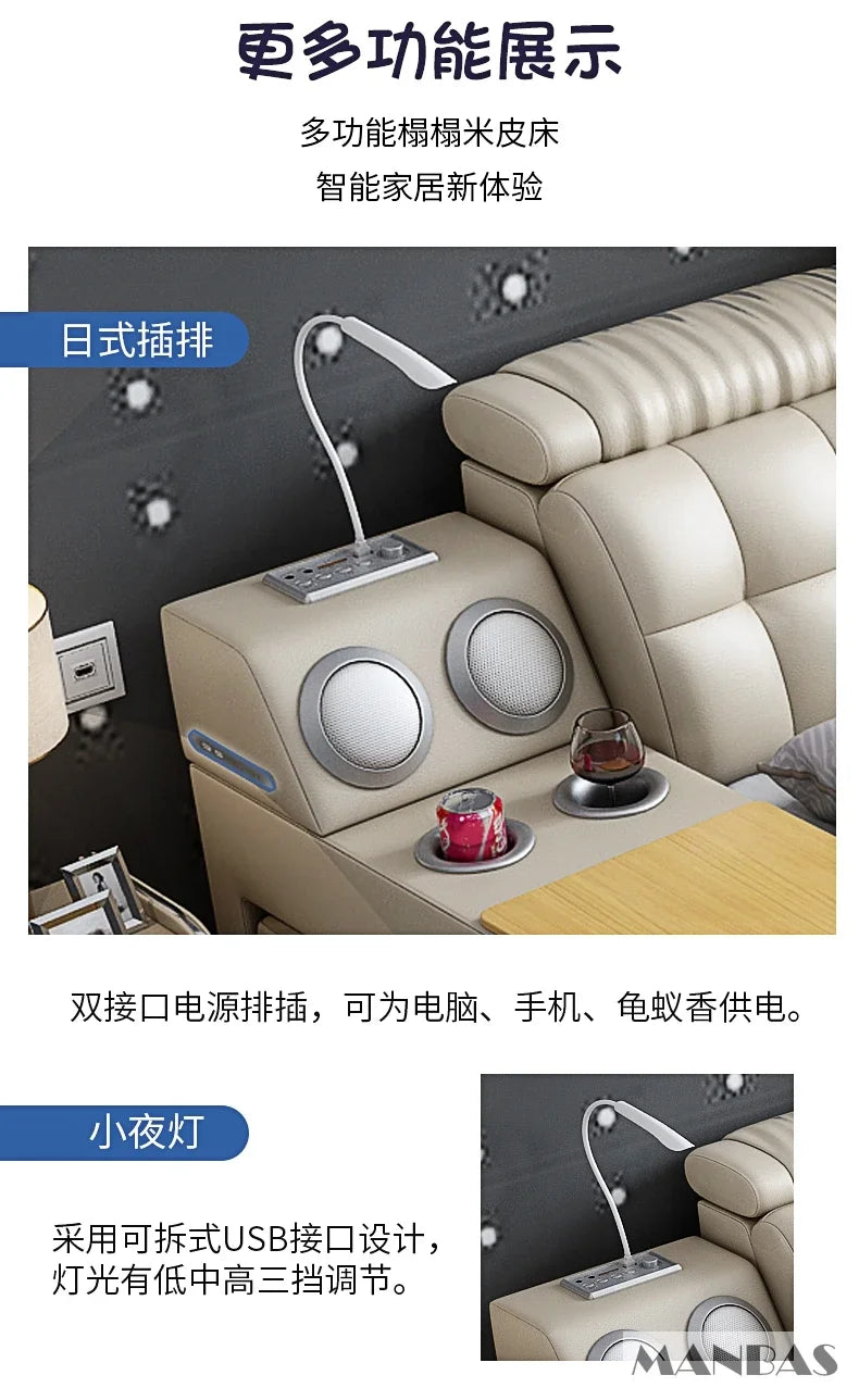 Modern Multi-Functional Tech Smart Bed with Storage, Speakers, USB, Bookshelves, and Tatami – Luxury King/Queen Ultimate Bed