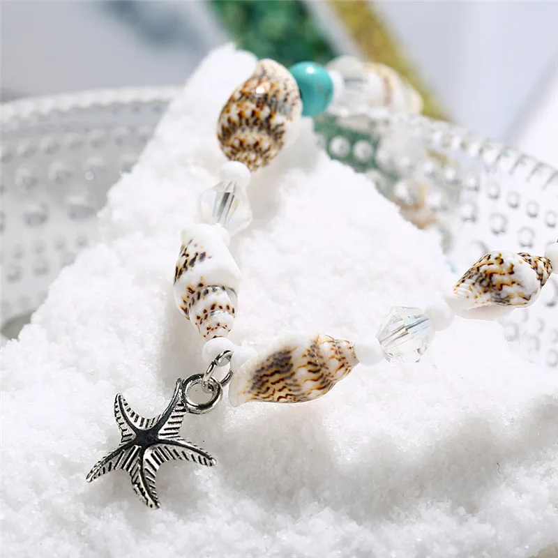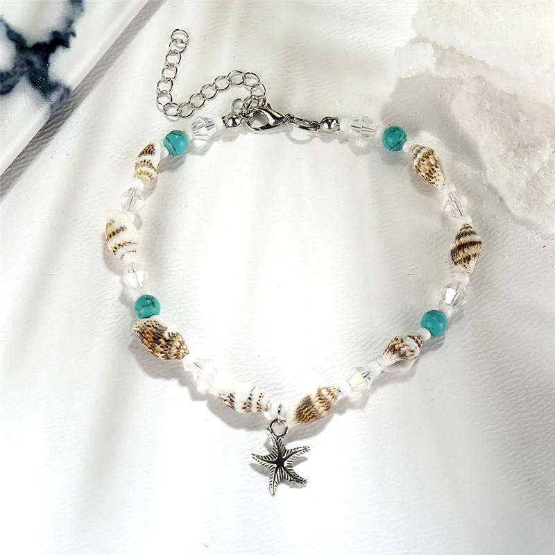 Modyle New Beads Anklets for Women Silver Color Starfish Beach Leg Bracelet Handmade Bohemian Foot Chain Boho Jewelry Gift